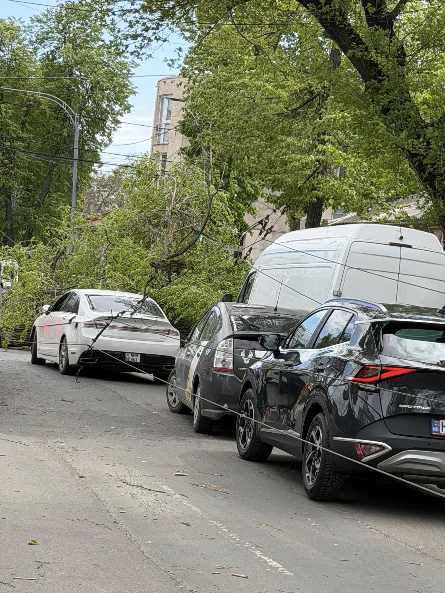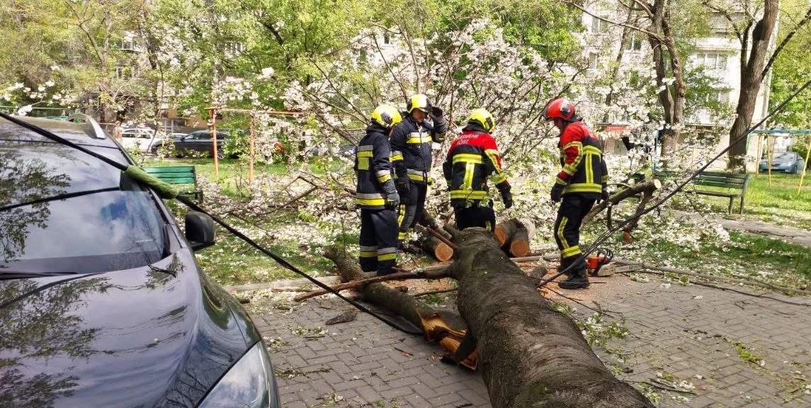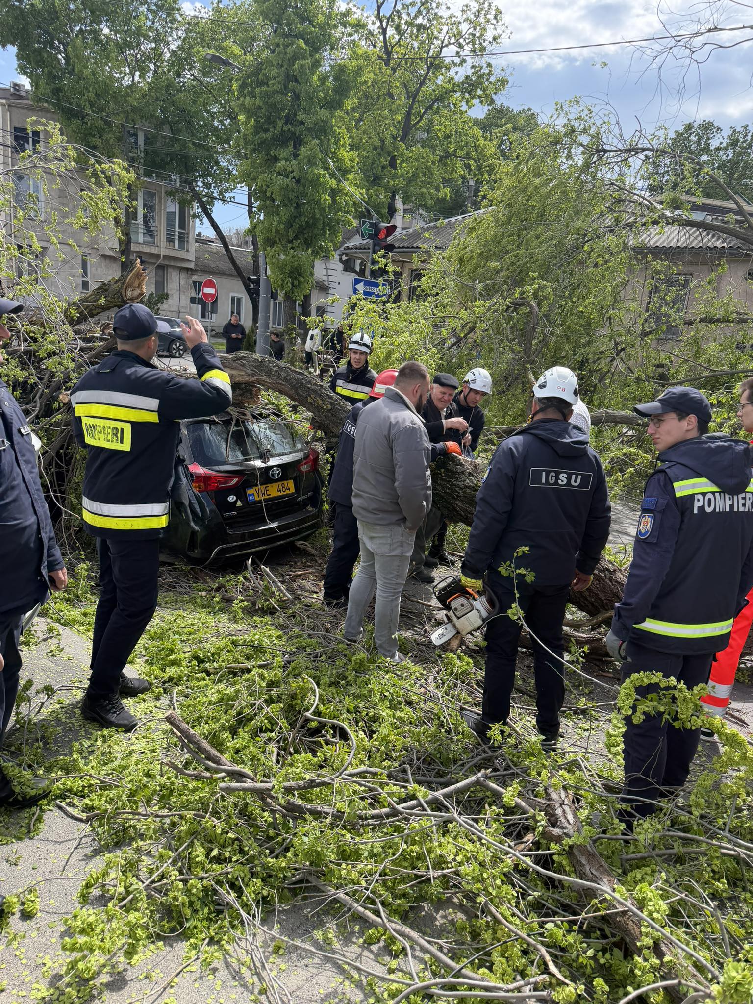În capitală au fost înregistrate 35 de intervenții ale salvatorilor. Într-unul dintre cazuri, din intersecția străzilor Mihail Kogălniceanu-Armenească, un copac a căzut peste un automobil în care se aflau două persoane.