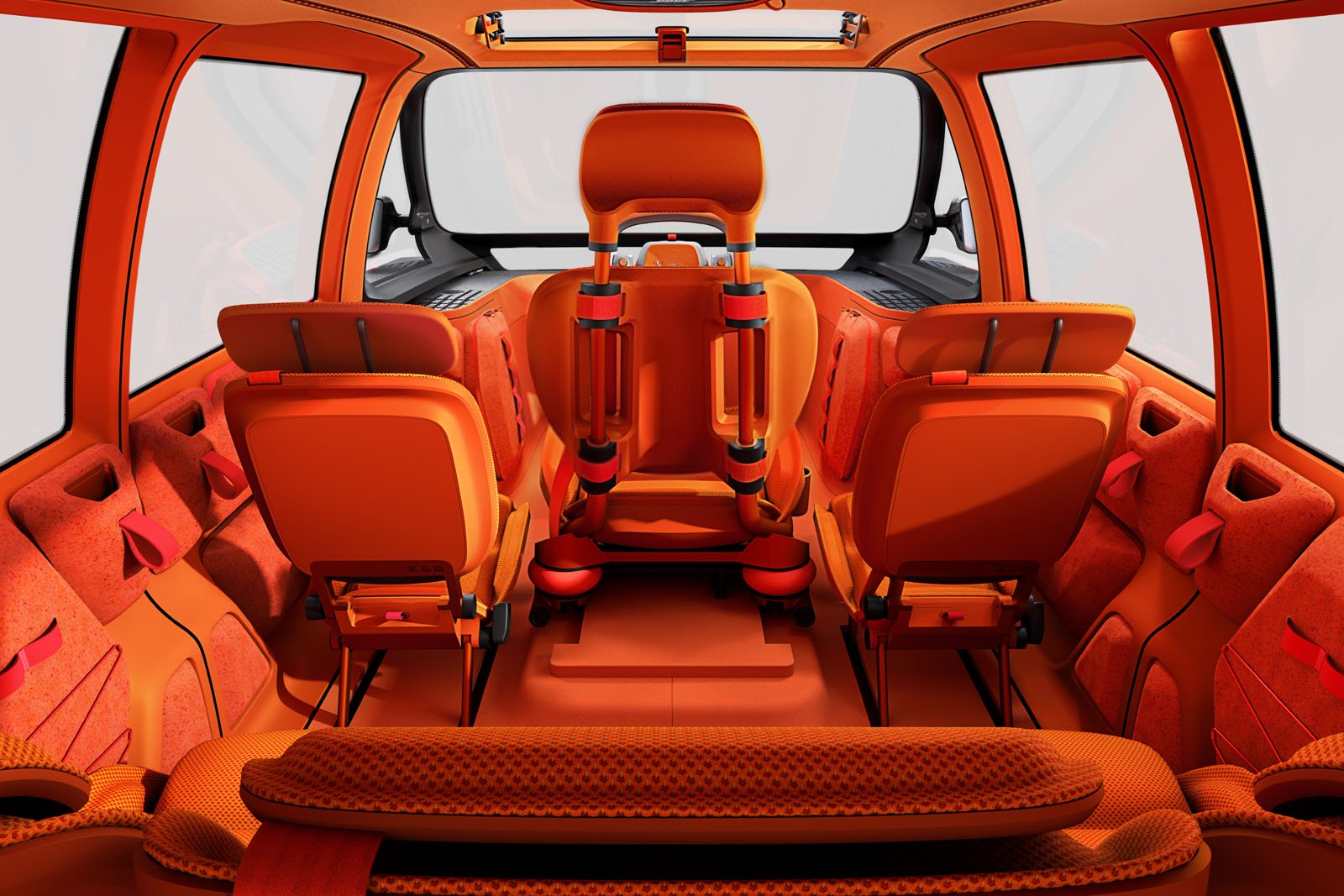 Configurația standard: patru locuri. Rândul secund are trei scaune individuale cu spătar rabatabil. Două locuri suplimentare se ascund sub scaunele laterale și pot fi montate rapid, oferind șase locuri fără a reduce volumul portbagajului. Scaunele rândului doi mai sunt detașabile și pot servi drept fotolii pentru utilizare în afara mașinii (un omagiu scaunelor de pe 2CV).