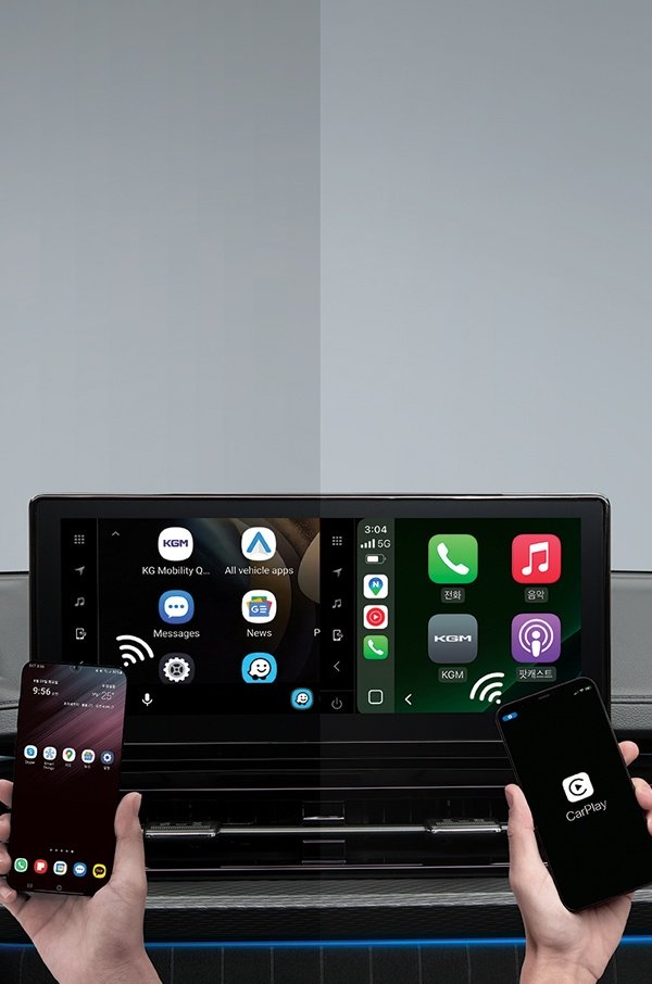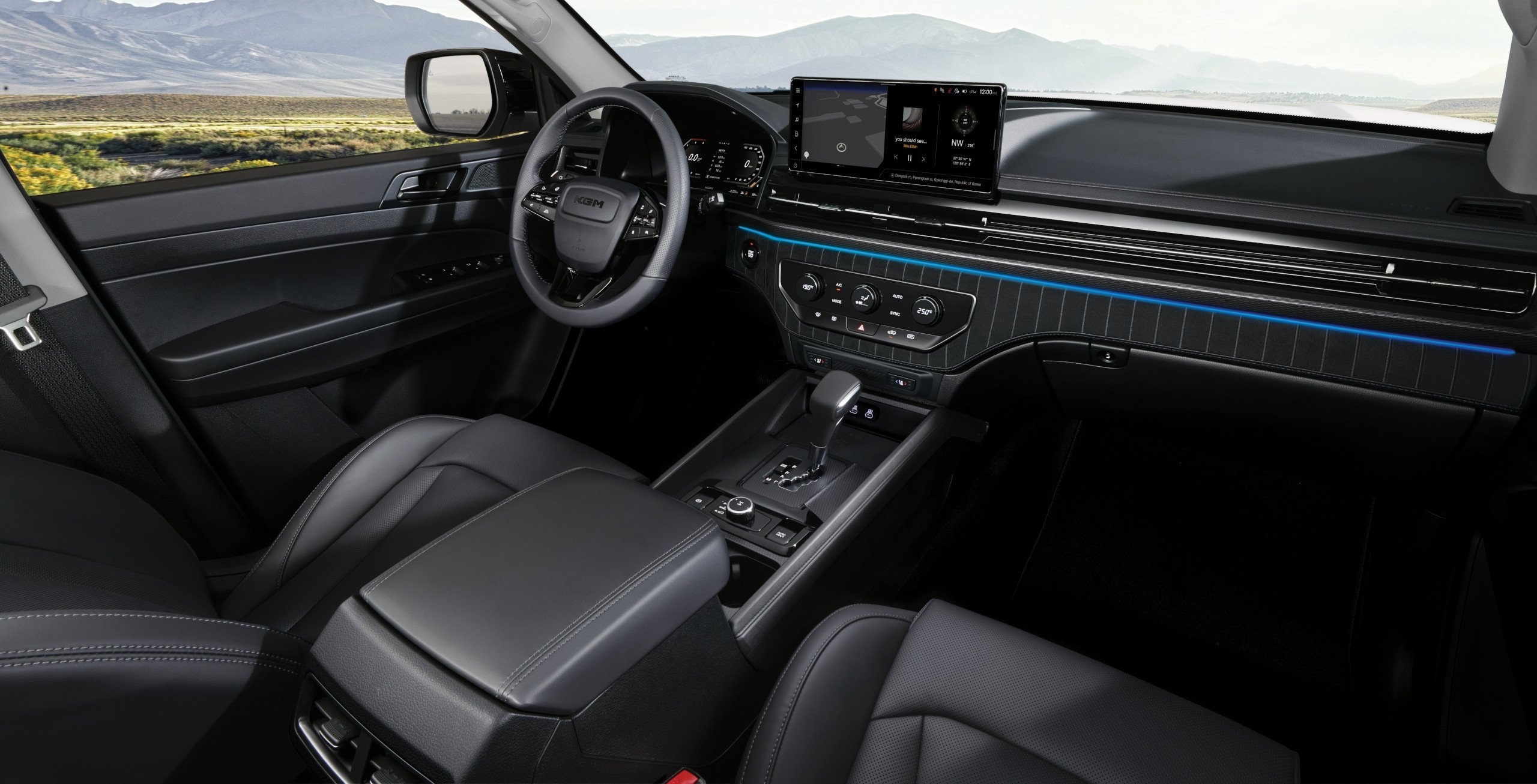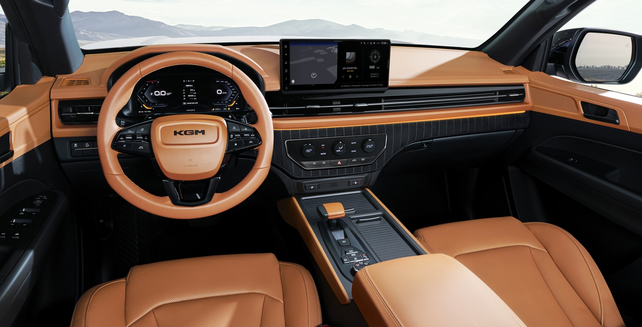 - Opțional: instrumentar digital de 12.3 inchi + navigație KGM Link în sistemul multimedia + controlul climatizării prin intermediul a trei discuri cu mici ecrane încorporate