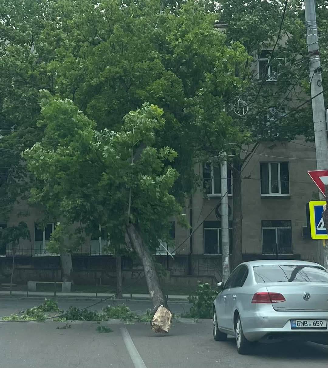 Un copac s-a rupt într-un mod mai neobișnuit din cauza vântului puternic. S-a întâmplat pe strada A. Bernardazzi din Chișinău, în intersecția cu strada Pușkin. Copacul s-a rupt cam de la jumătate, însă tulpina și coroana nu s-au prăbușit pe carosabil. Tulpina a rămas ”în picioare” exact pe mijlocul străzii, coroana sprijinindu-se de cabluri electrice.