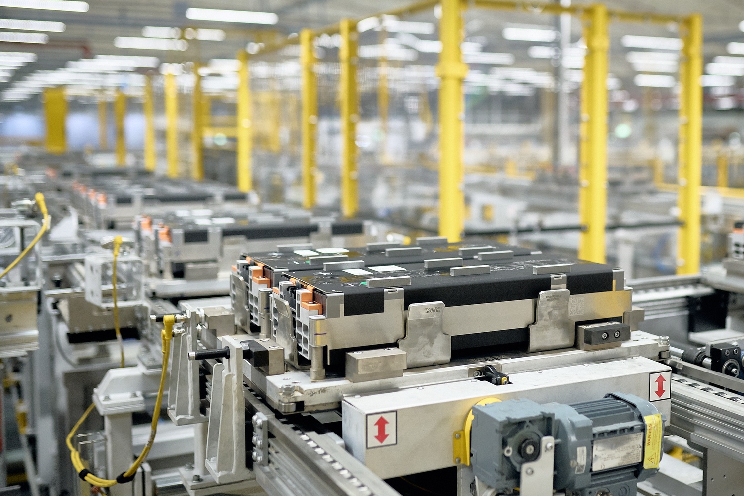 Cei 180 de roboți nou instalați sudează, lipesc și înșurubează carcasa bateriei și o echipează cu până la 12 module de baterie. Un total de aproximativ 2775 de piese individuale sunt asamblate într-un pachet de baterii pe linia de producție automatizată, lungă de 2 km.