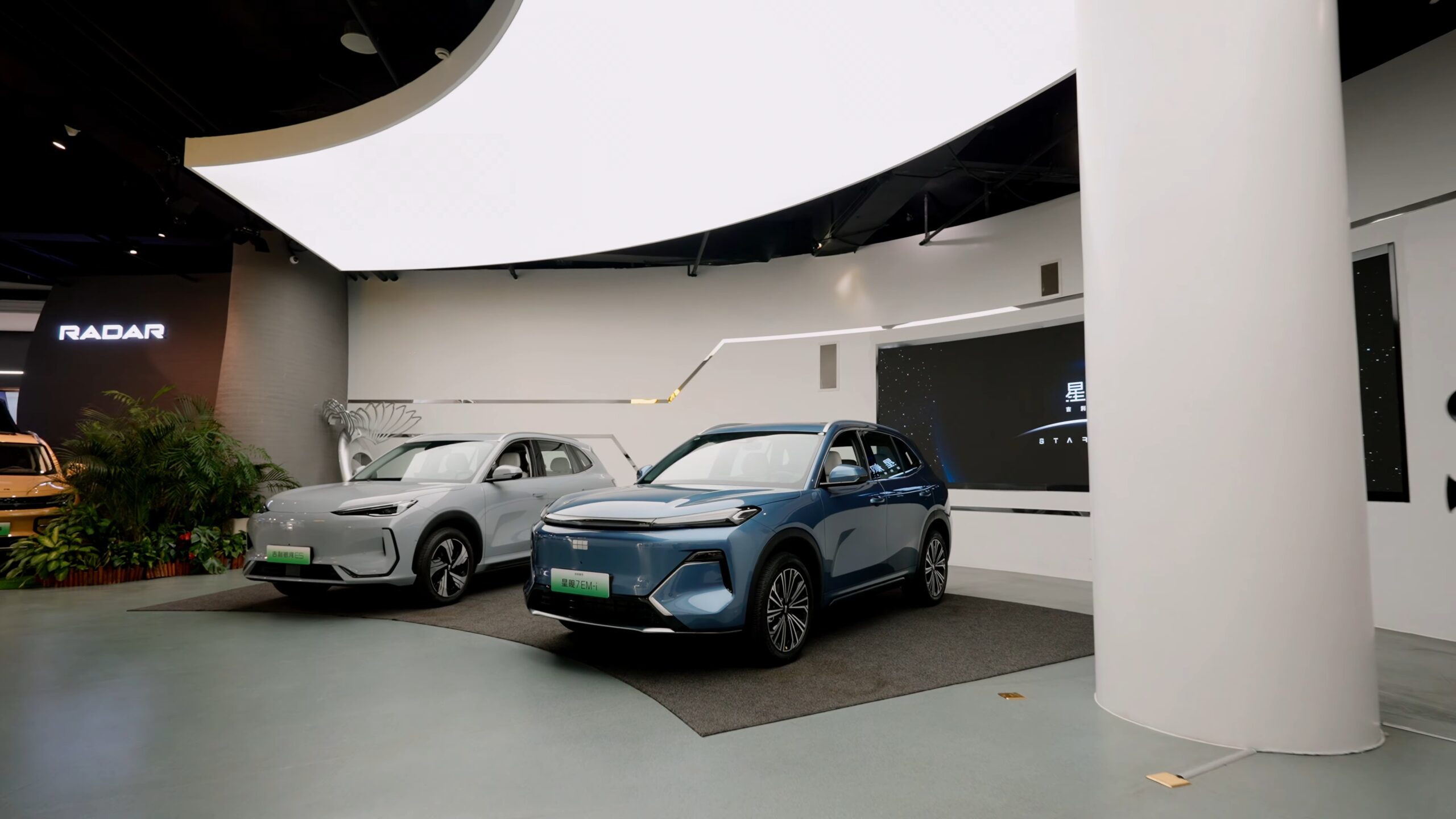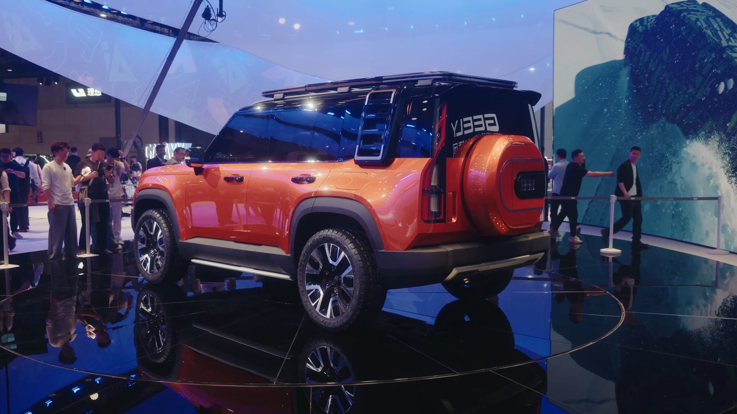 Vedeta a fost prototipul Geely Cruiser, descris ca o fuziune între tehnologie și estetica asiatică, primul vehicul din lume capabil să se adapteze stilului de condus și suprafeței drumului prin inteligență artificială. Acesta promite funcții precum condusul în „stil crab” (pe diagonală), întoarcerea în loc și rezistența la scufundare, datorită unei caroserii ”digitale” avansate.