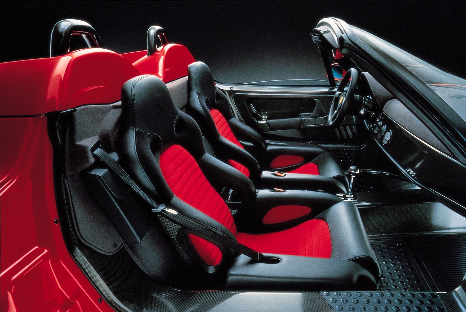 Lansat pentru a celebra 50 de ani de Ferrari, F50 a fost primul supercar al mărcii propulsat de un V12 aspirat natural, derivat DIRECT din Formula 1. Cu un șasiu monococ din fibră de carbon și un motor de 4698 cm³, ce dezvoltă 520 CP la 8500 rpm și un cuplu maxim de 471 Nm la 6500 rpm, F50 a reprezentat apogeul transferului tehnologic din motorsport în anii ’90. Cutia de viteze este una mecanică în șase trepte.