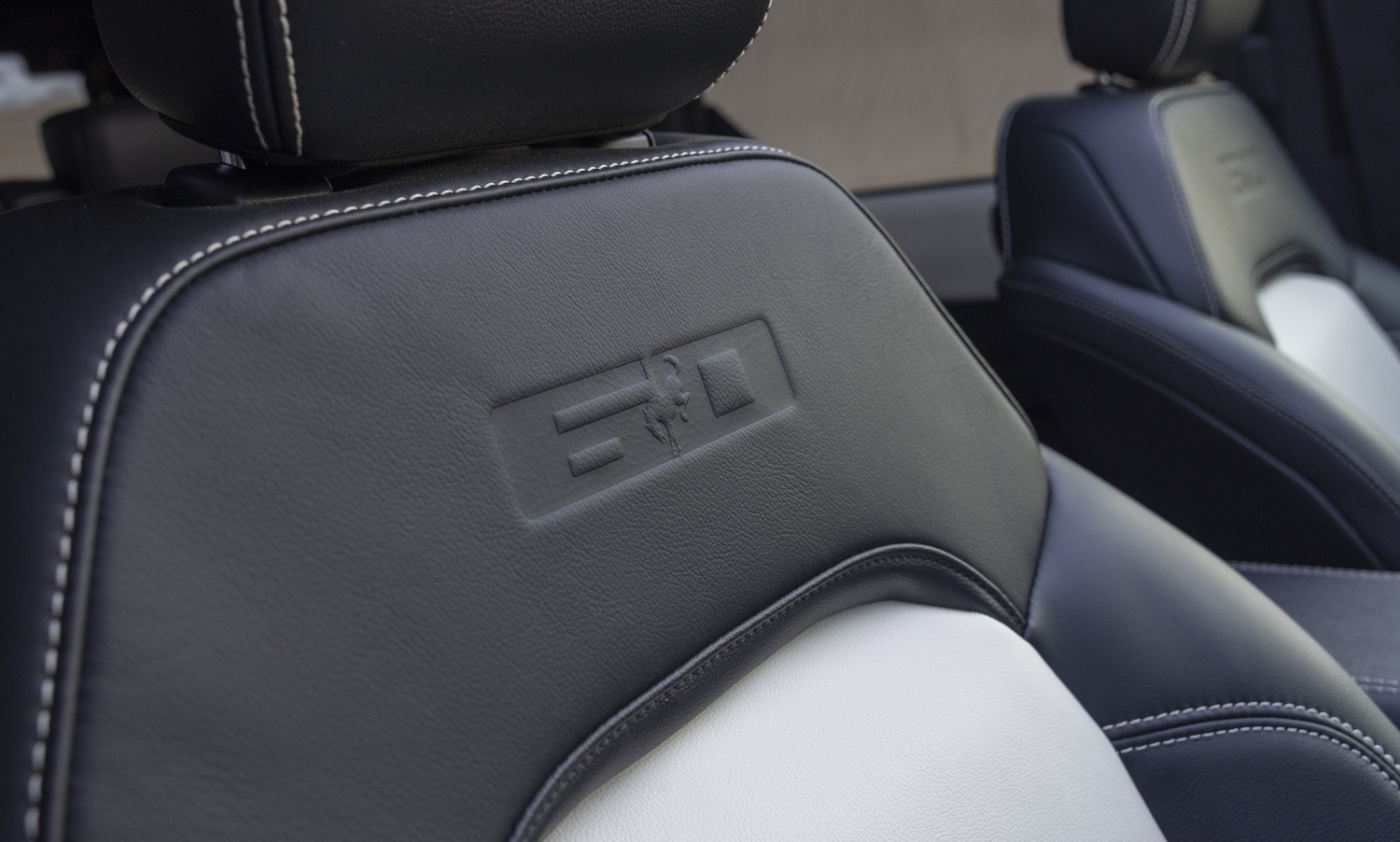 Grafica Vermilion Red de pe laterale include logoul aniversar, iar insigna 60th Anniversary de pe aripile față, inspirată de cloisonné-ul de pe Mustang, subliniază originea specială a acestui model. Echipa de design Ford a ascuns și câteva „ouă de Paște” pentru a încânta pasionații.