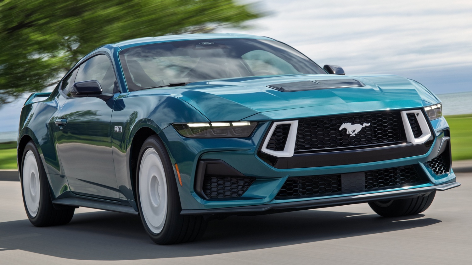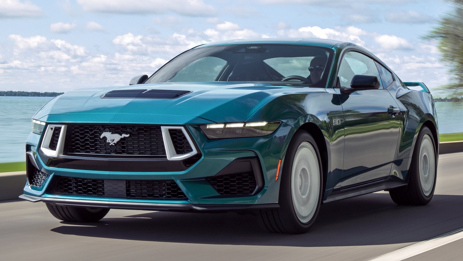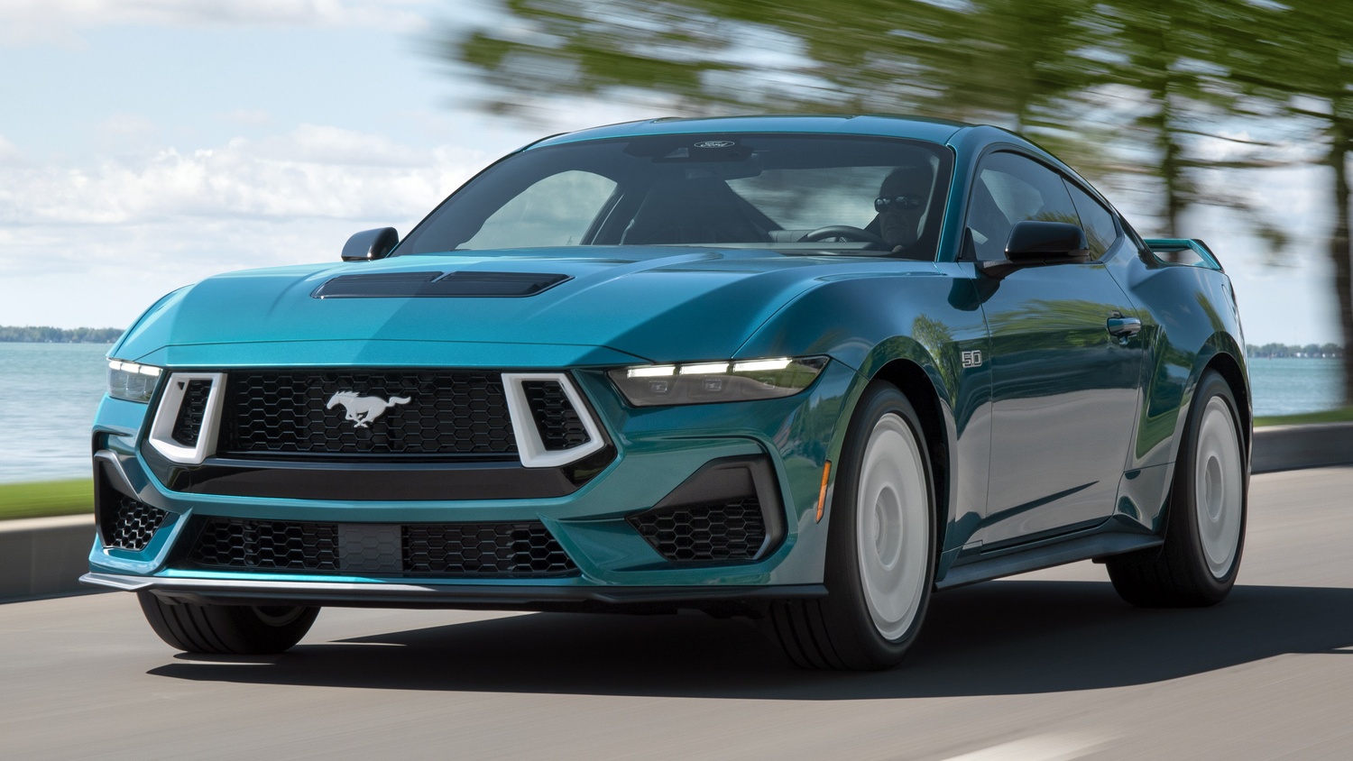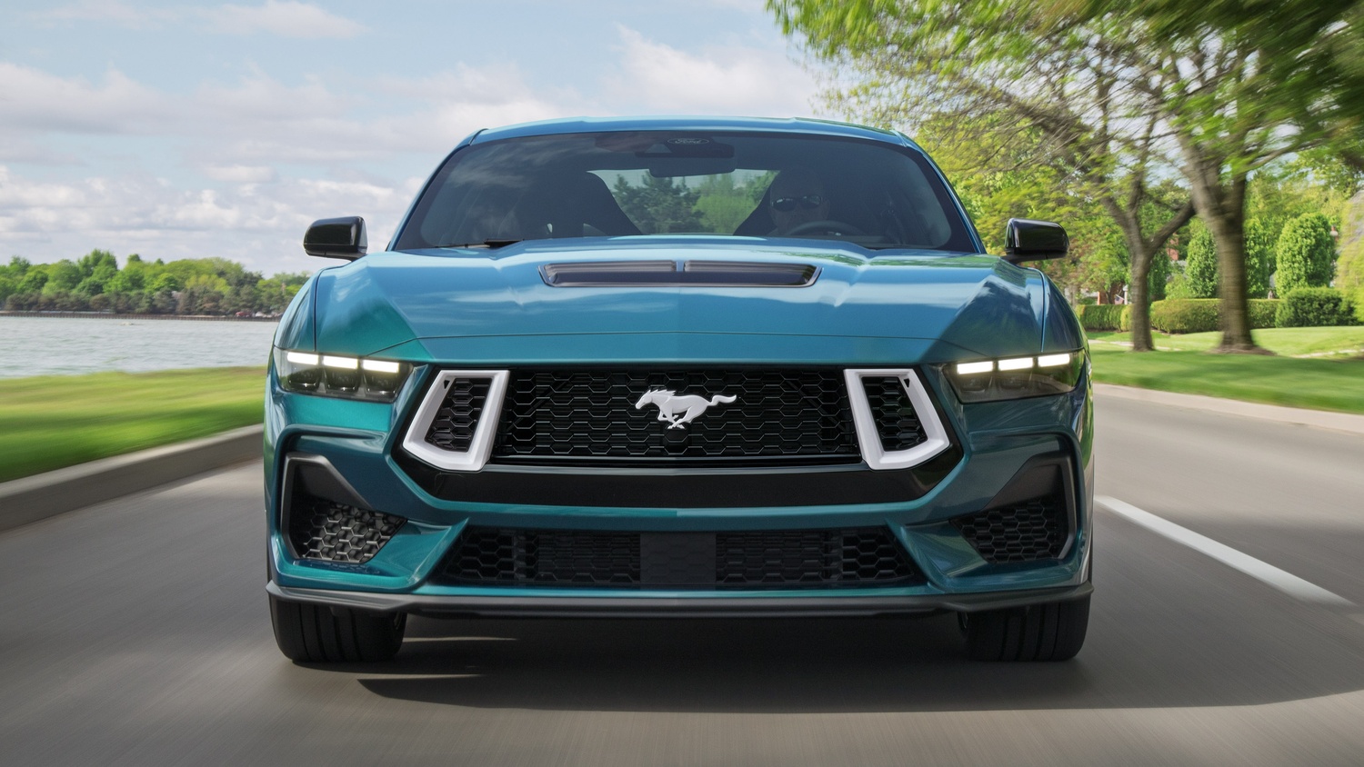 Ambele sunt finisate în mid-gloss Oxford White, cu capace centrale colorate asortate, marcate cu logoul Mustang GT într-un font nou, brevetat de echipa Ford Vehicle Personalization. Același logo apare și pe luneta modelelor coupe, reminiscent al marcajelor de pe Mustangurile din 1987-1993.
