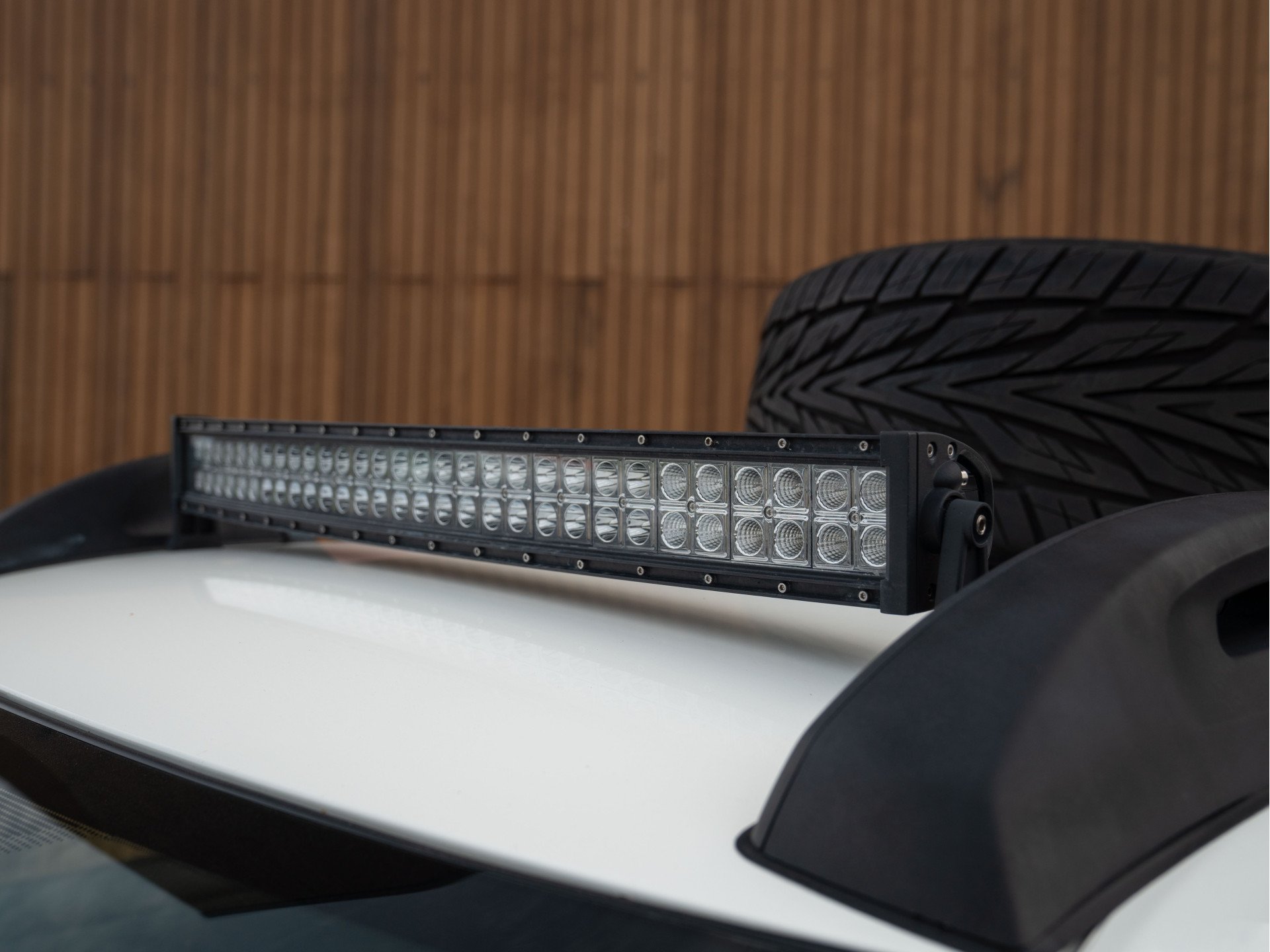 Exteriorul este completat cu proiectoare de lumină suplimentare, railings-uri de plafon personalizate și chiar un suport pentru o roată de rezervă de dimensiune completă. Aceasta din urmă se transportă pe acoperiș, accentuând look-ul de vehicul de expediții.