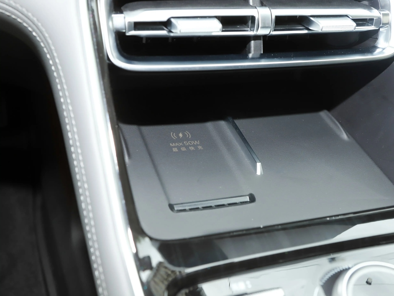 • Consola centrală include un comutator pentru controlul unor comenzi multimedia, comenzi fizice pentru climatizare, un încărcător wireless de 50W, porturi USB, suporturi pentru pahare, etc.