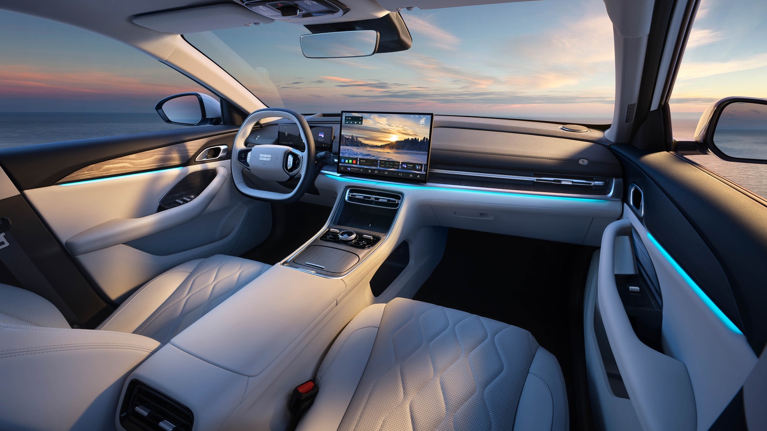 • Reproduce cabina modelului Starshine 8, cu un ecran central plutitor de 15.4 inchi care rulează sistemul multimedia proprietar Flyme Auto. Se declară suport pentru Apple CarPlay, HiCar, ICCOA și Flyme Link.