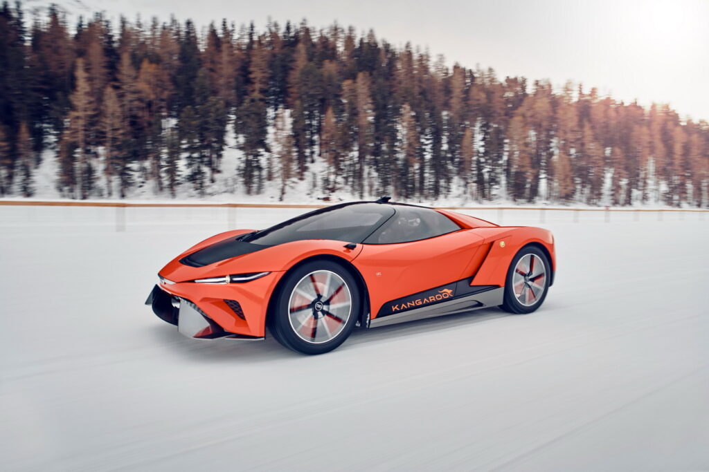 GFG Style Kangaroo nu este doar o machetă folosită pentru expoziții. Mașina a suportat deja primele teste de viteză gheaţa lacului elveţian din St. Moritz. Perspectivele de apariţie în serie a modelului vor fi identificate după părăsirea Salonului Auto de la Geneva.