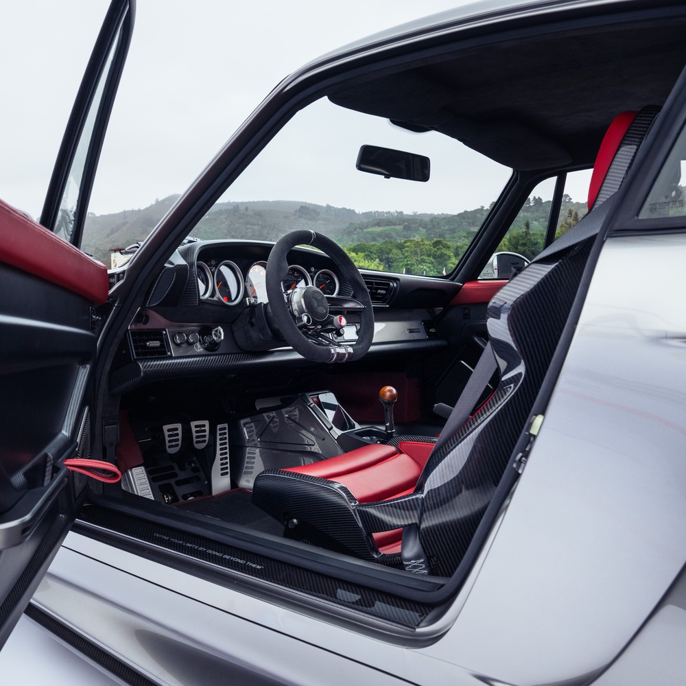 • Șasiul, bazat pe structura de oțel al lui 993 cu întăriri care dublează rigiditatea, este îmbrăcat în panouri și uși din fibră de carbon, accentuate de mai multe detalii expuse pe carenajul motorului, spoilerul față și difuzorul spate.