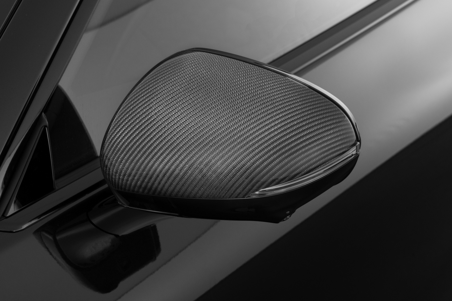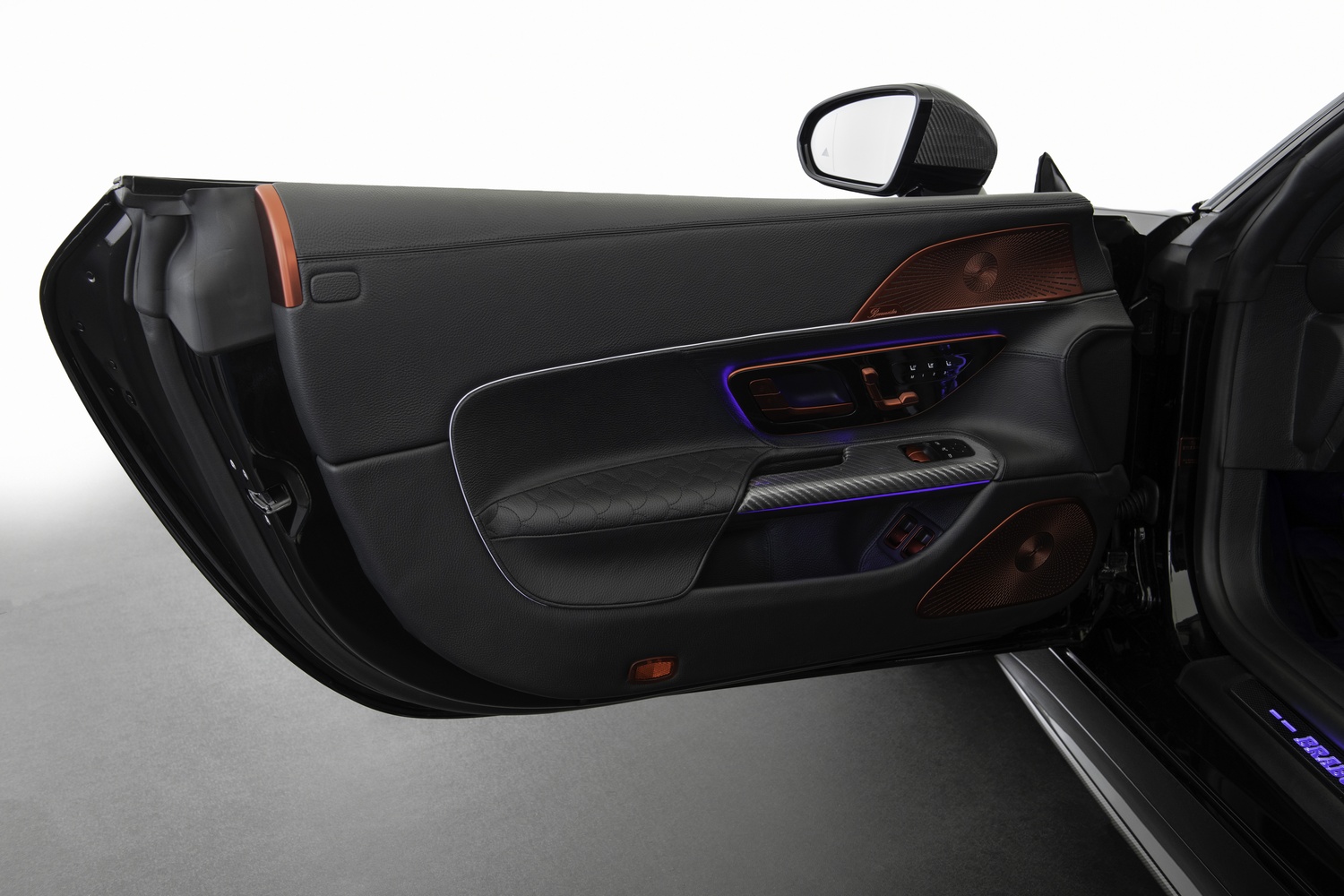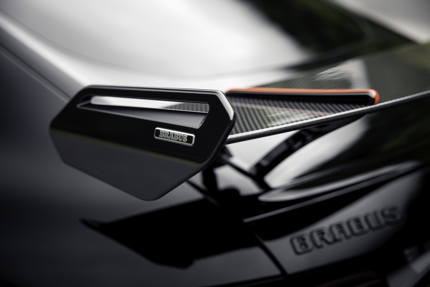 • Proiecție a logoului BRABUS pe sol la deschiderea portierelor, realizată prin ornamente din fibră de carbon la oglinzile exterioare.