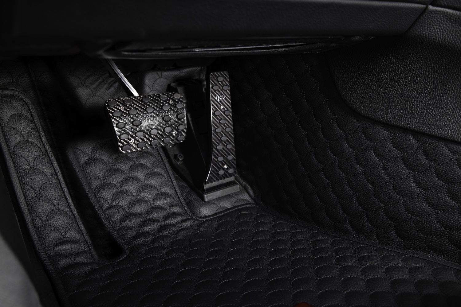 • Elemente din fibră de carbon lucioasă, inclusiv pedale și ornamente pentru praguri.