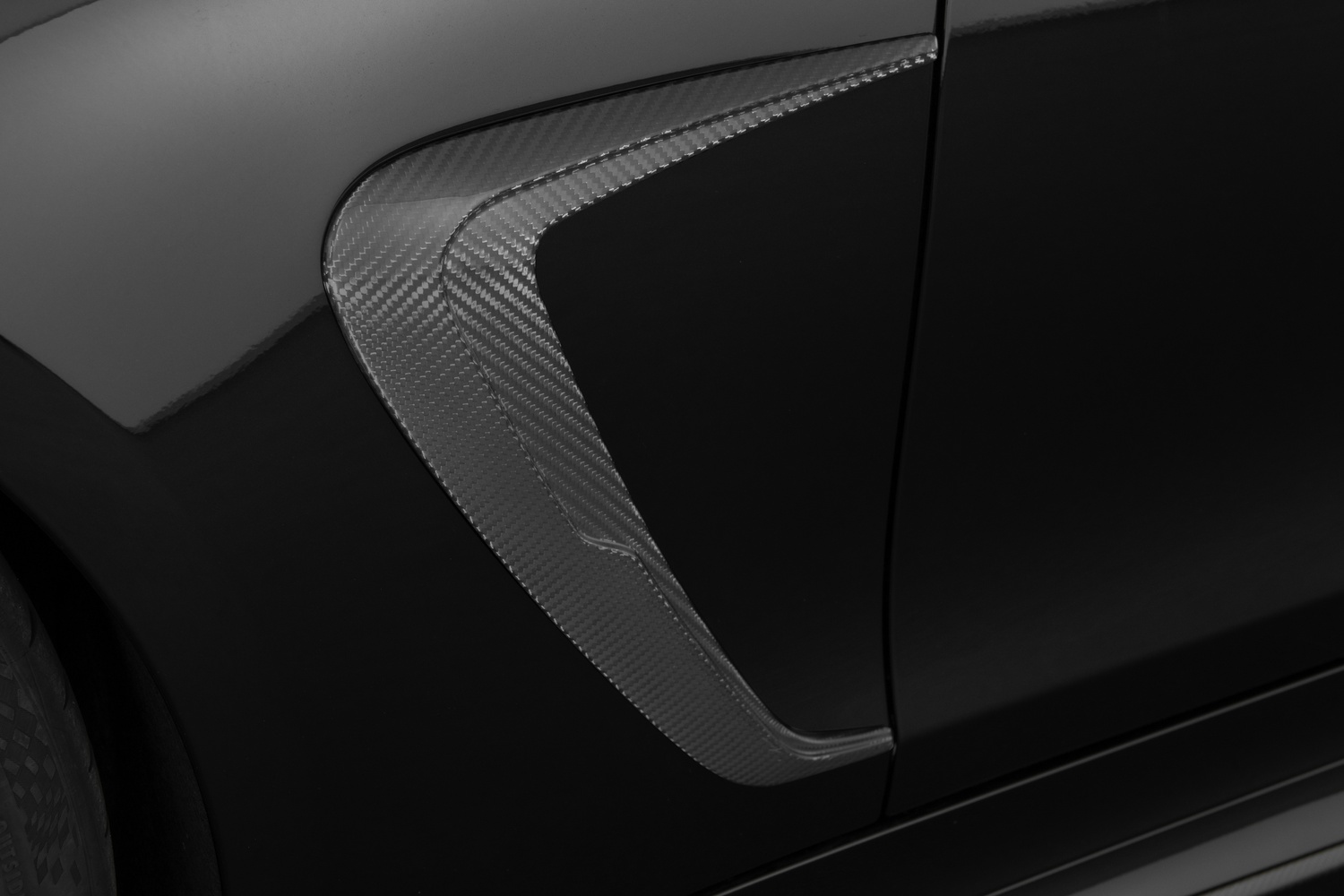 • Extensii la nivelul arcurilor roților din față și spate, realizate din fibră de carbon, pentru un look spectaculos.