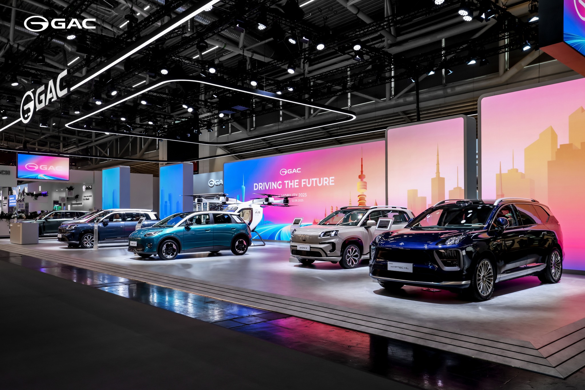 La IAA Mobility 2025, GAC a prezentat cinci automobile, inclusiv SUV-ul electric AION V, vehiculul de stil de viață inteligent AION UT și trei debuturi europene: SUV-ul electric de lux HYPTEC HL, MPV-ul PHEV de lux E9 și SUV-ul PHEV de familie GS7. De asemenea, a fost expus primul vehicul zburător autonom cu mai multe rotoare produs în masă, GOVY AirCab, evidențiind viziunea GAC pentru mobilitatea la altitudine joasă.