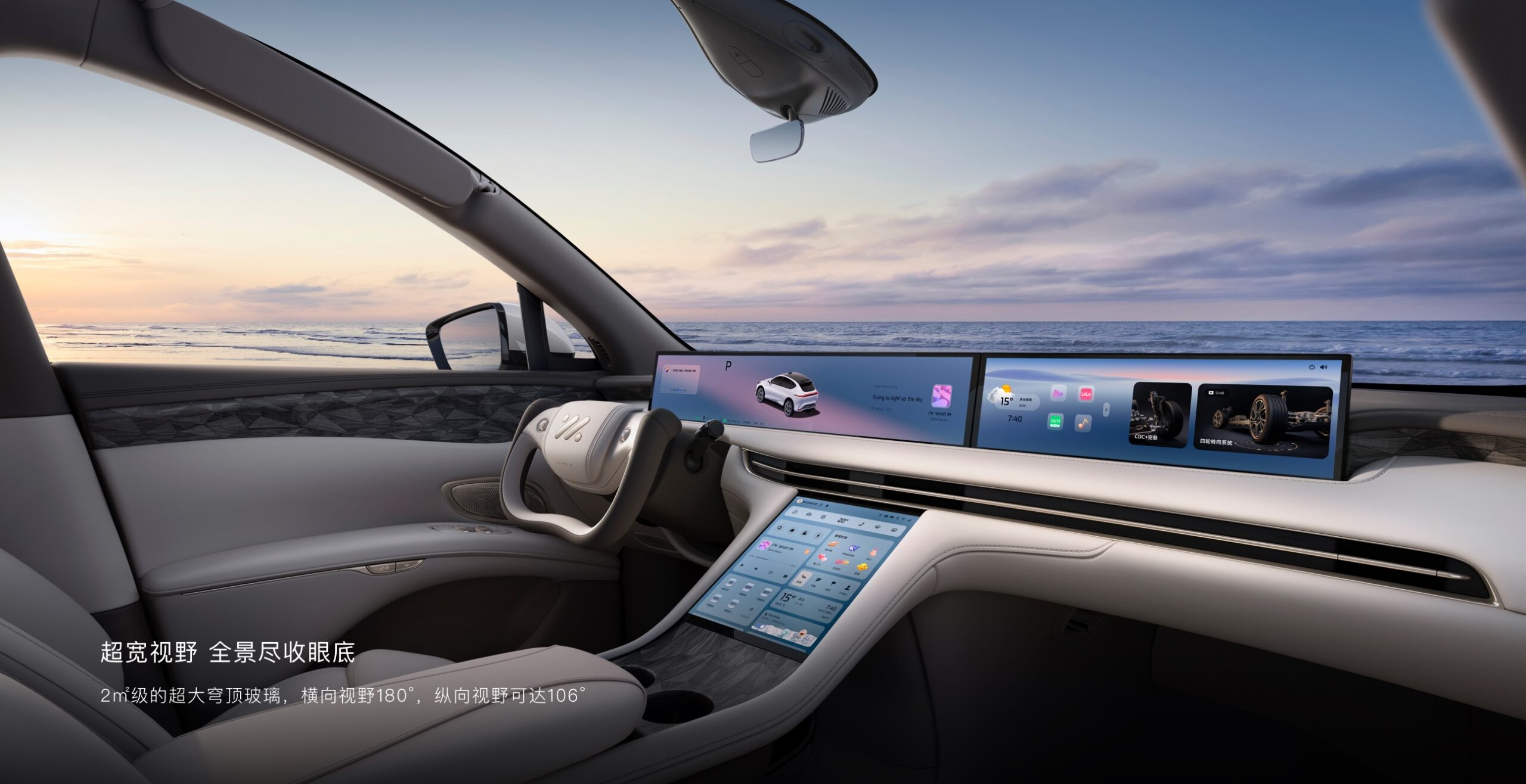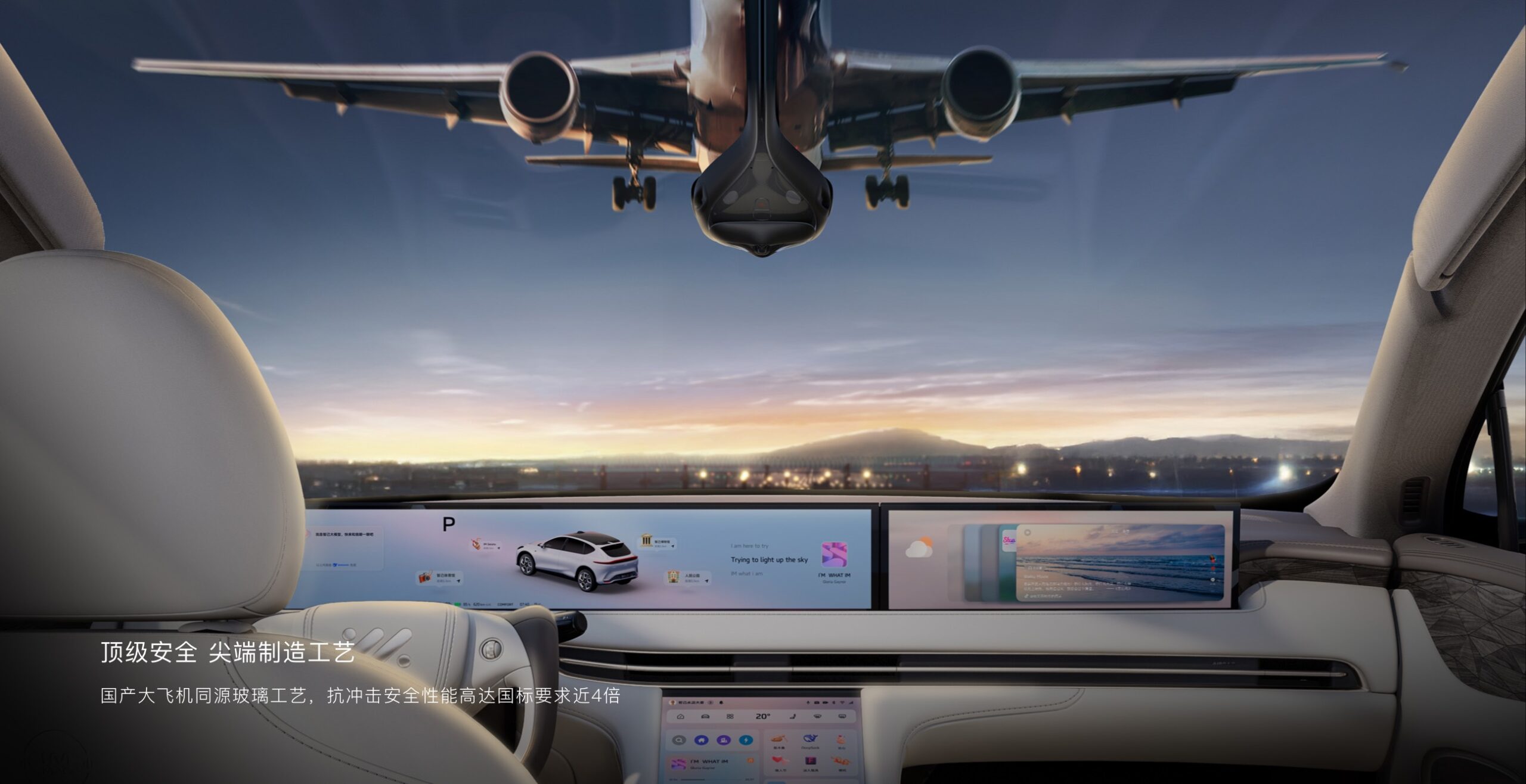 - Parbrizul este declarat fabricat cu tehnologie inspirată de aviație, folosind un proces inovator cu trei straturi de placare cu argint, care asigură o rezistență la impact de aproape patru ori mai mare decât standardele naționale chineze.