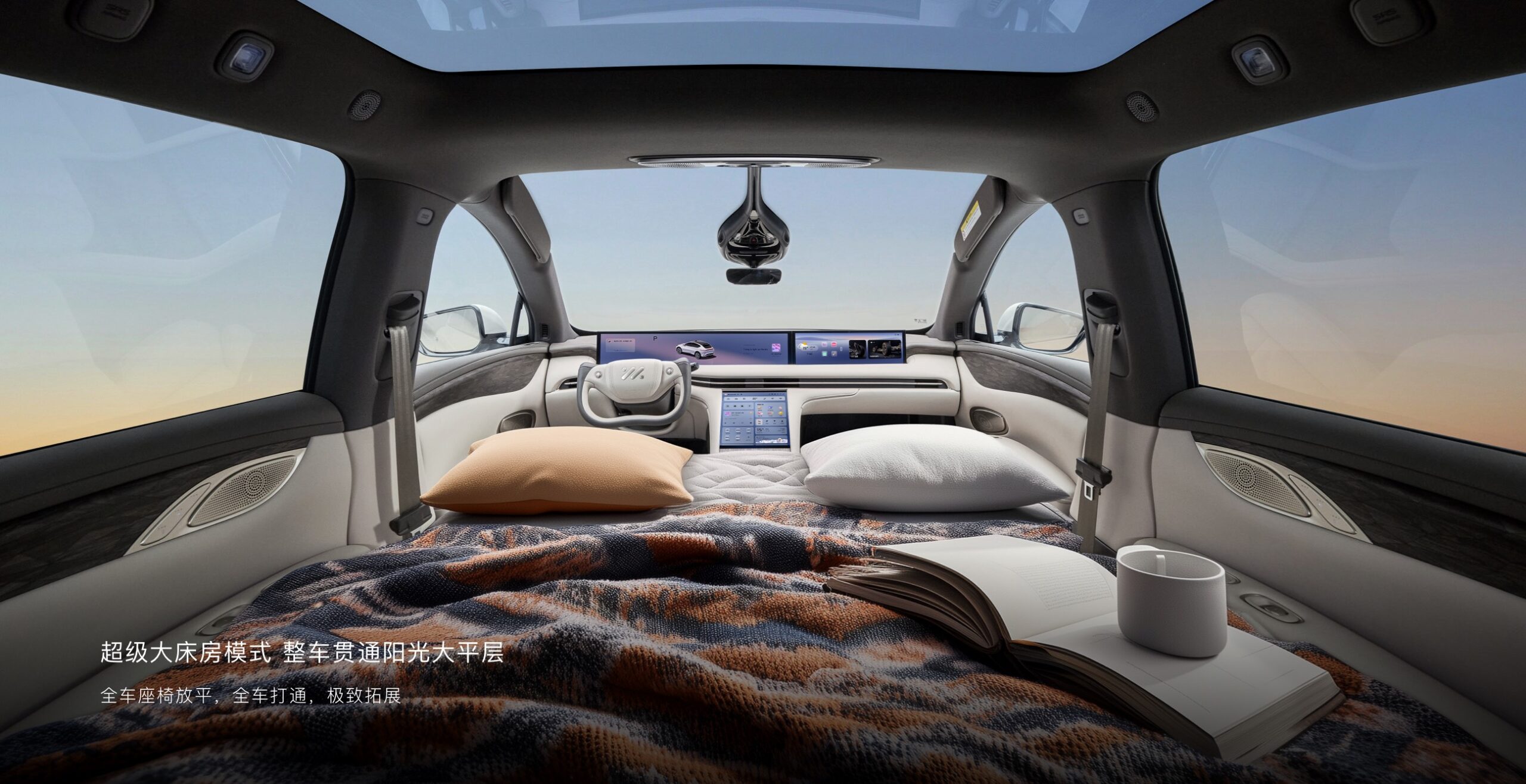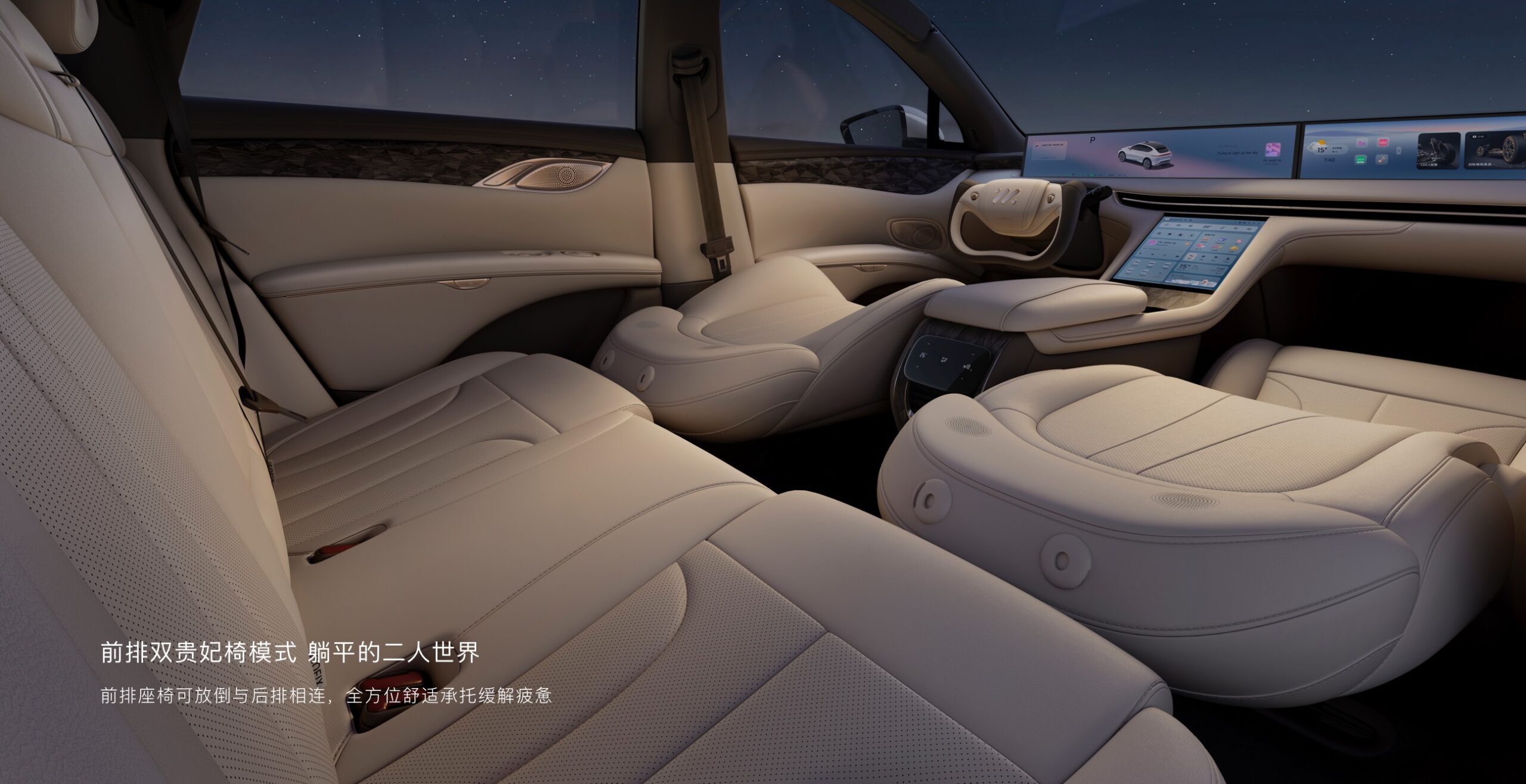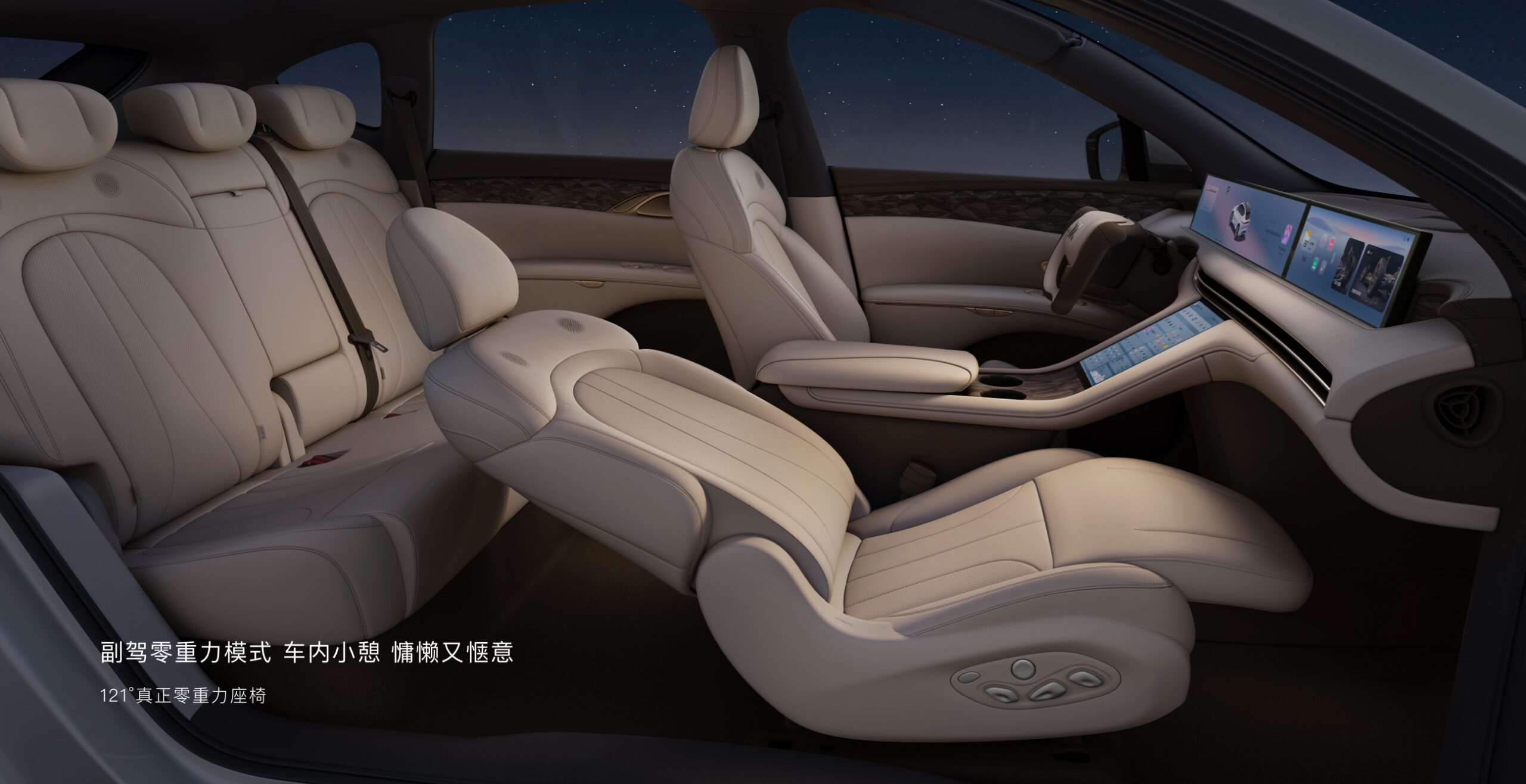 - Scaunele pot fi aranjate în patru moduri unice: mod zero-gravitație (înclinate până la 121°) pentru pasagerul din față, mod „double princess” pentru odihnă simultană, „big bed” și „super big bed” pentru vacanțe sau camping (cu rabatarea celor posterioare).