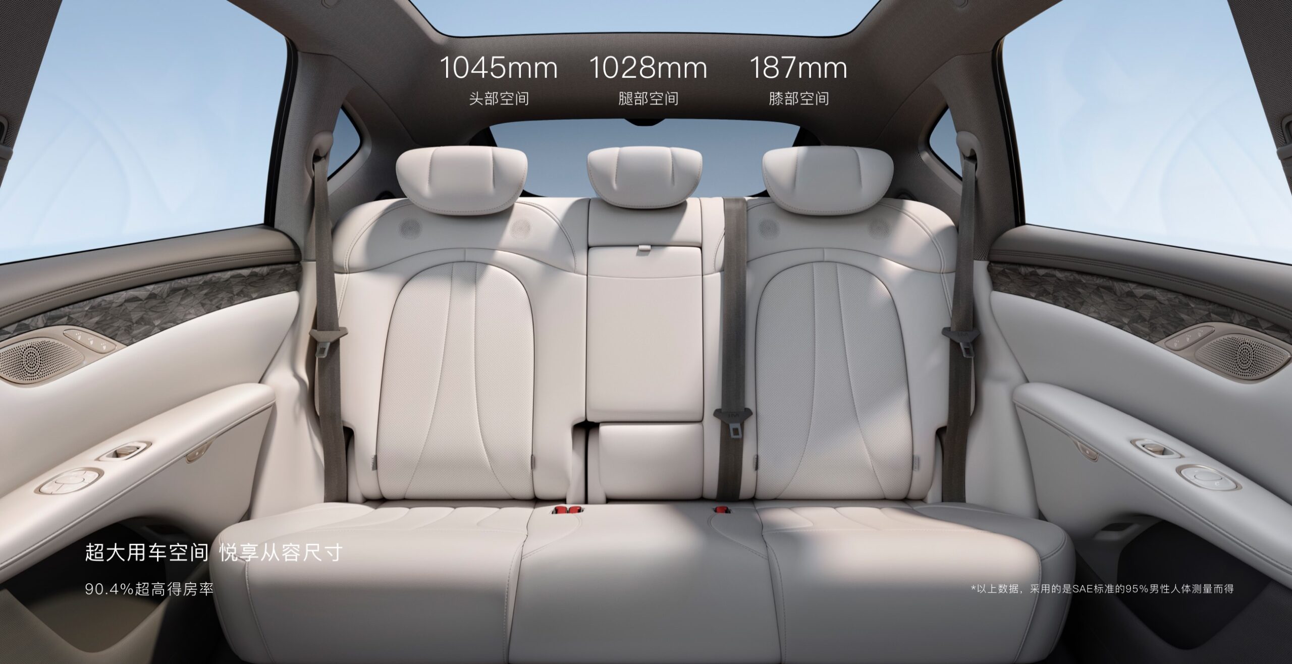- Oferă un spațiu generos în spate: peste un metru pentru cap și picioare, plus 190 mm spațiu la genunchi, pentru confort maxim.