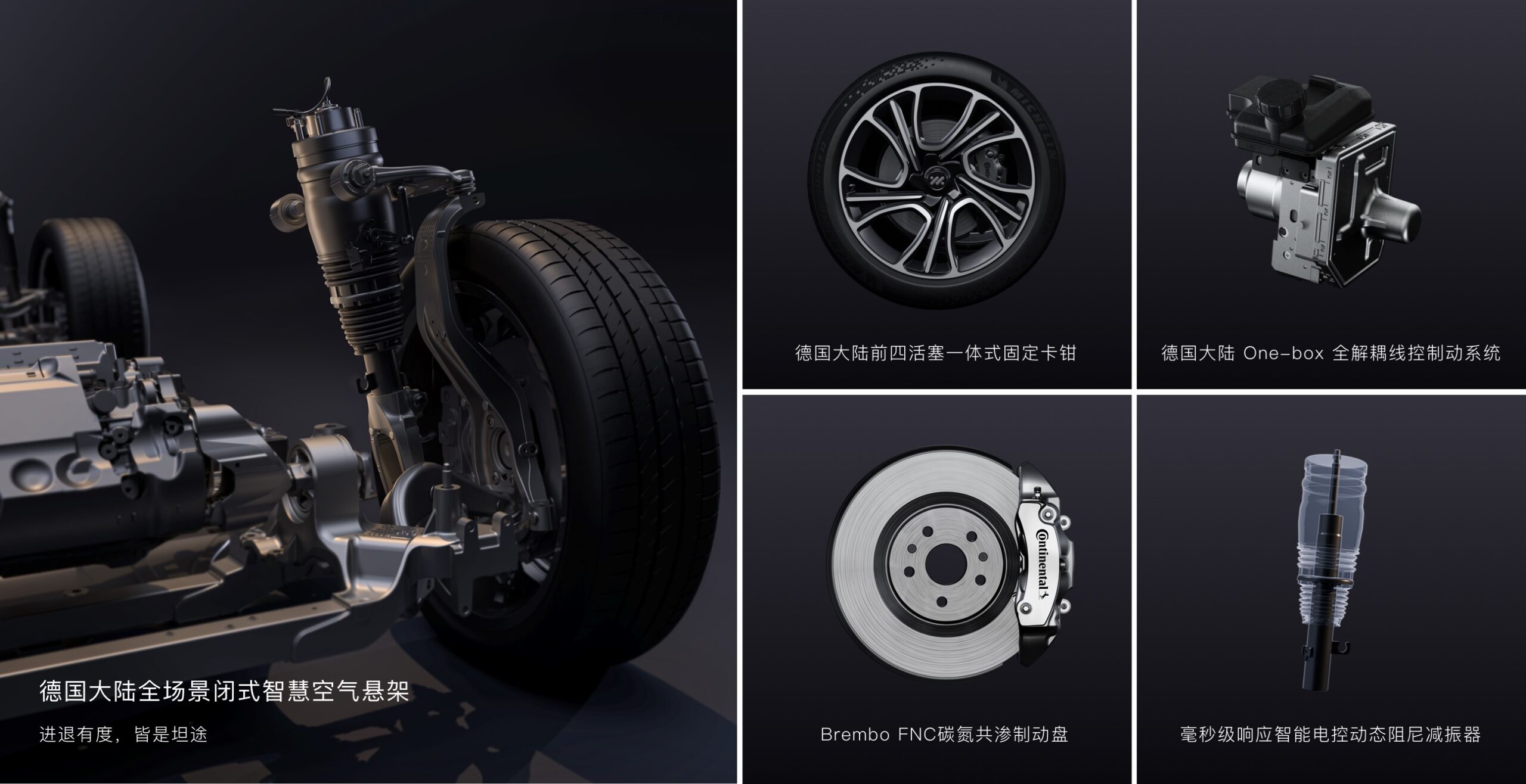 - Sistemul de frânare performant include discuri Brembo FNC (din nitrură de carbon) și etrieri frontali de la Continental, sporind siguranța și atingând limitele de manevrabilitate ale sedanurilor de performanță.