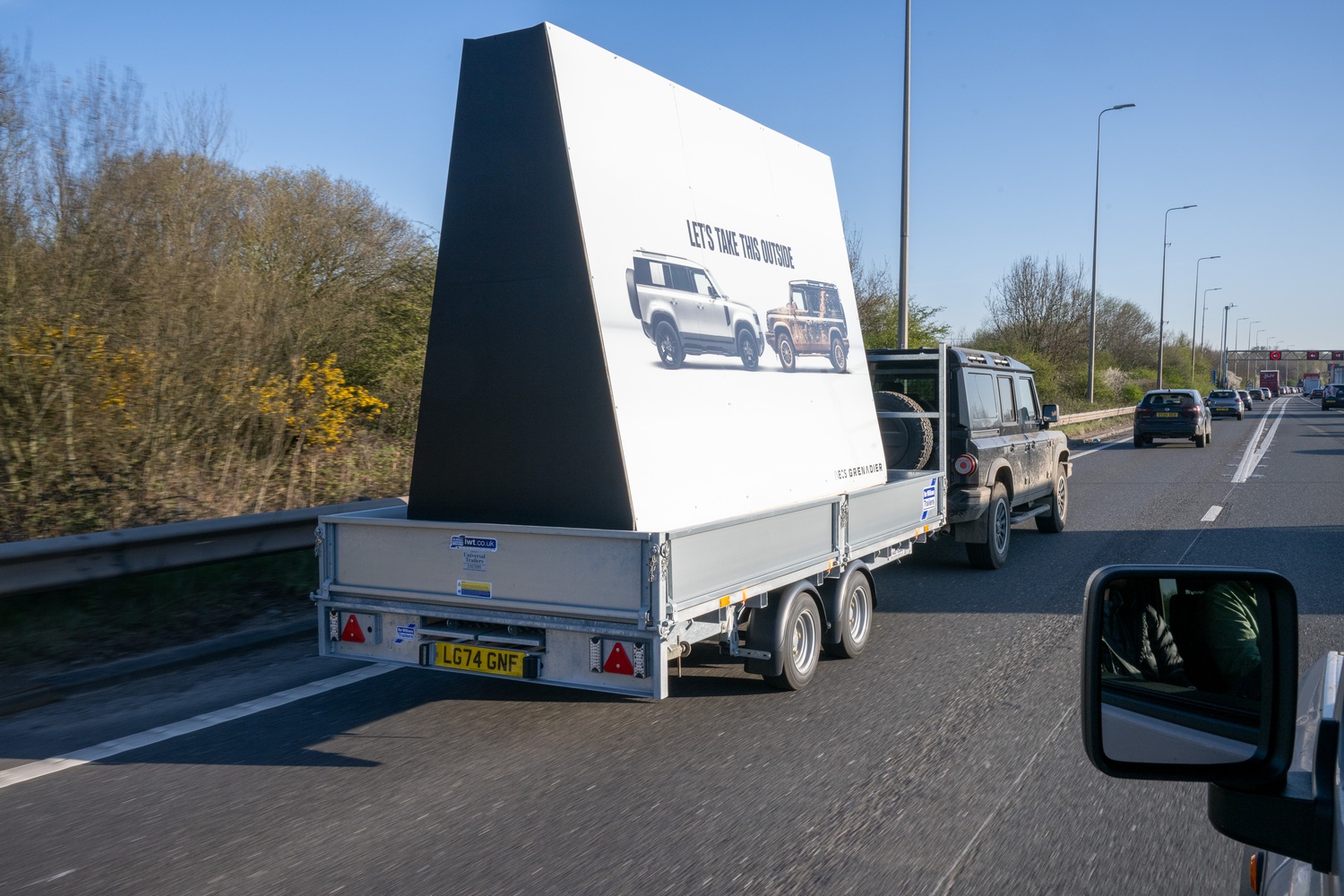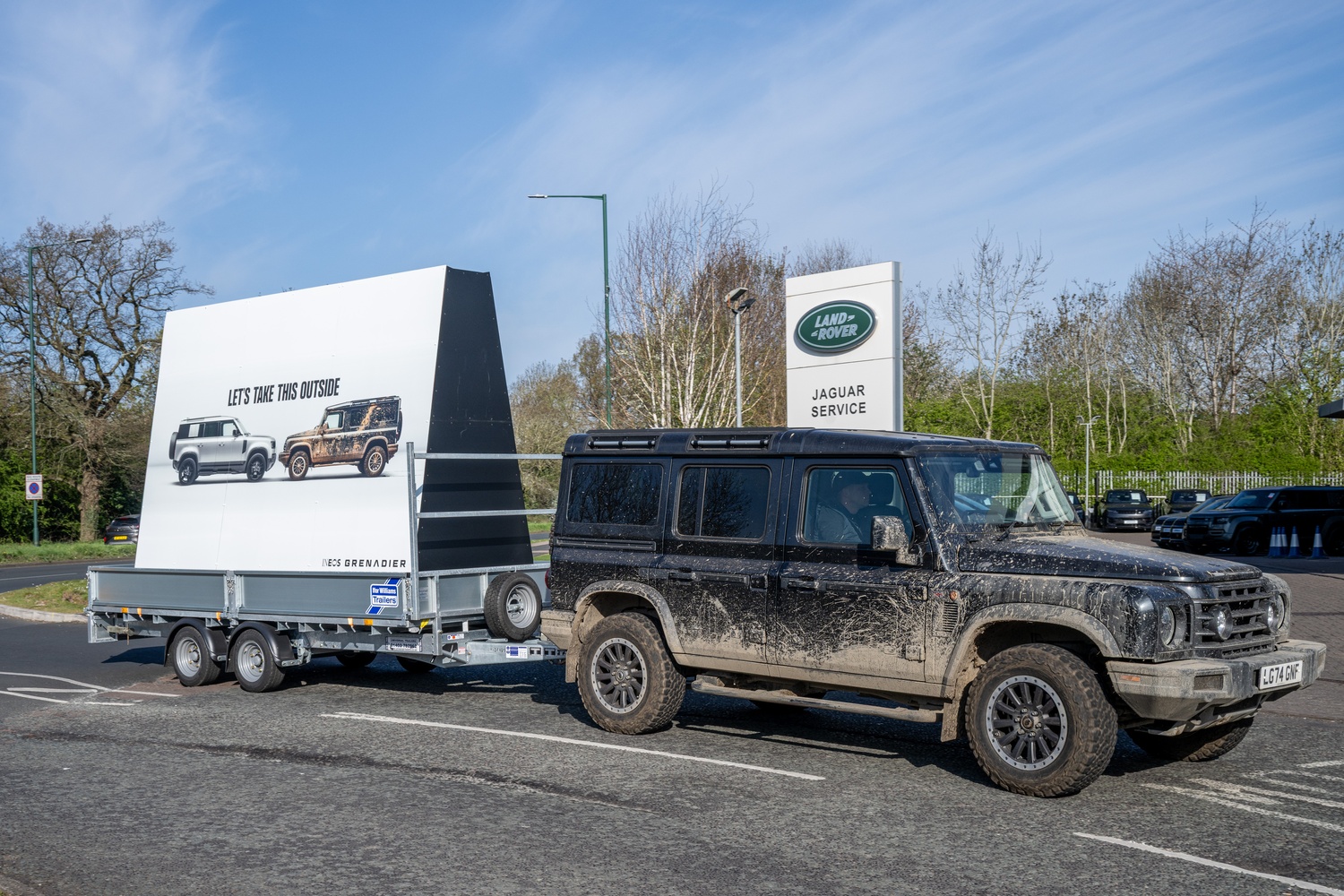 Campania debutează cu o reclamă principală, distribuită pe rețelele sociale și pe panouri publicitare, care ilustrează un Grenadier plin de urme de noroi din aventuri off-road, alături de un model curat și ordonat al unei mărci concurente (Land Rover). Sub imagine, un text ironic și jucăuș invită la zâmbete, subliniind contrastul dintre cele două abordări. „Să rezolvăm asta afară” („Lets Take This Outside”) este sloganul care dă startul acestei inițiative neobișnuite.