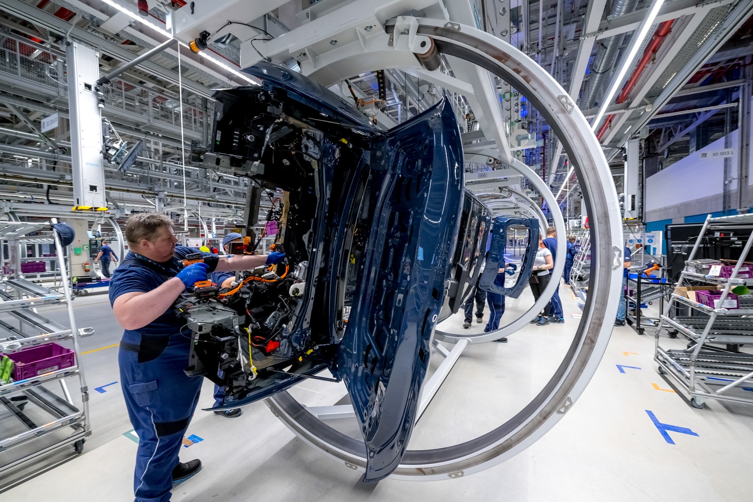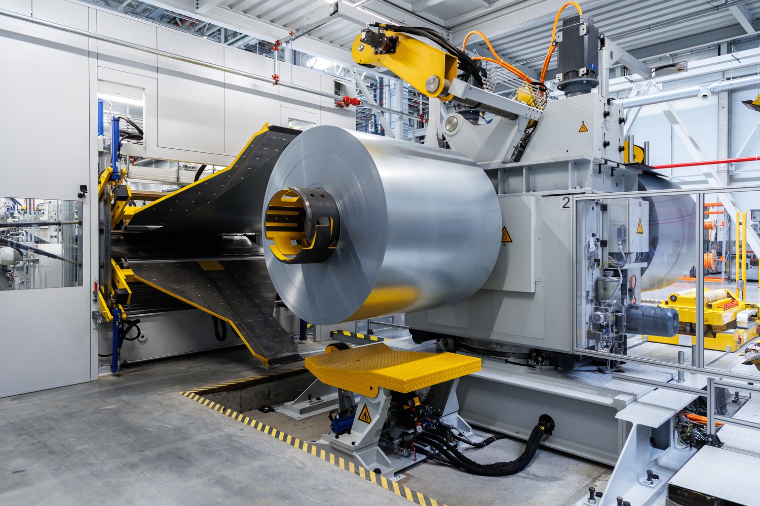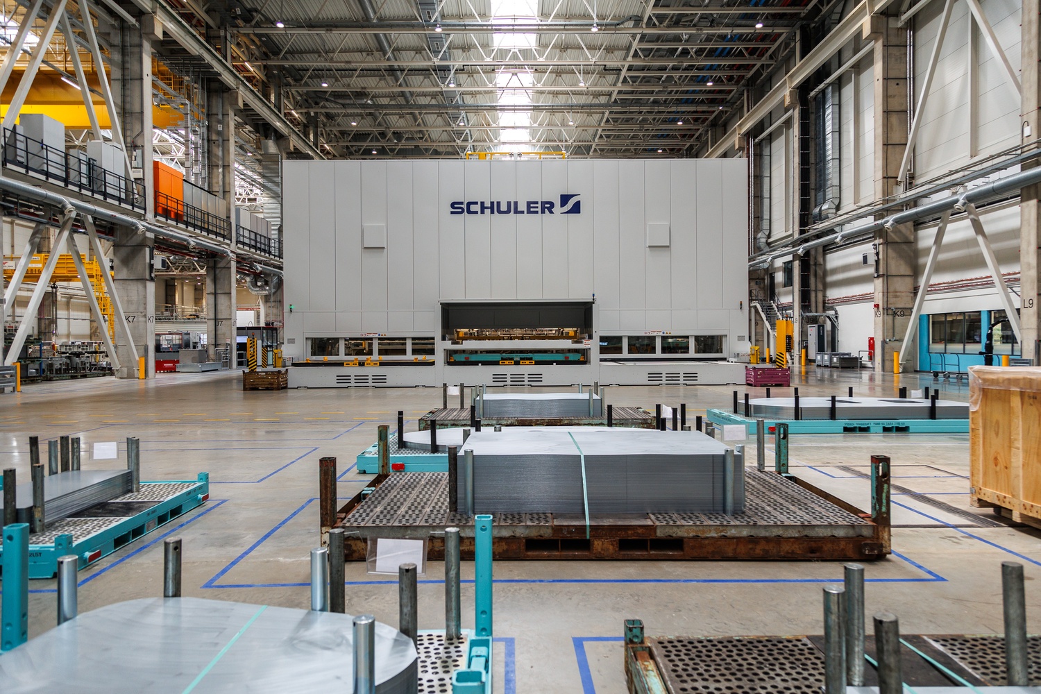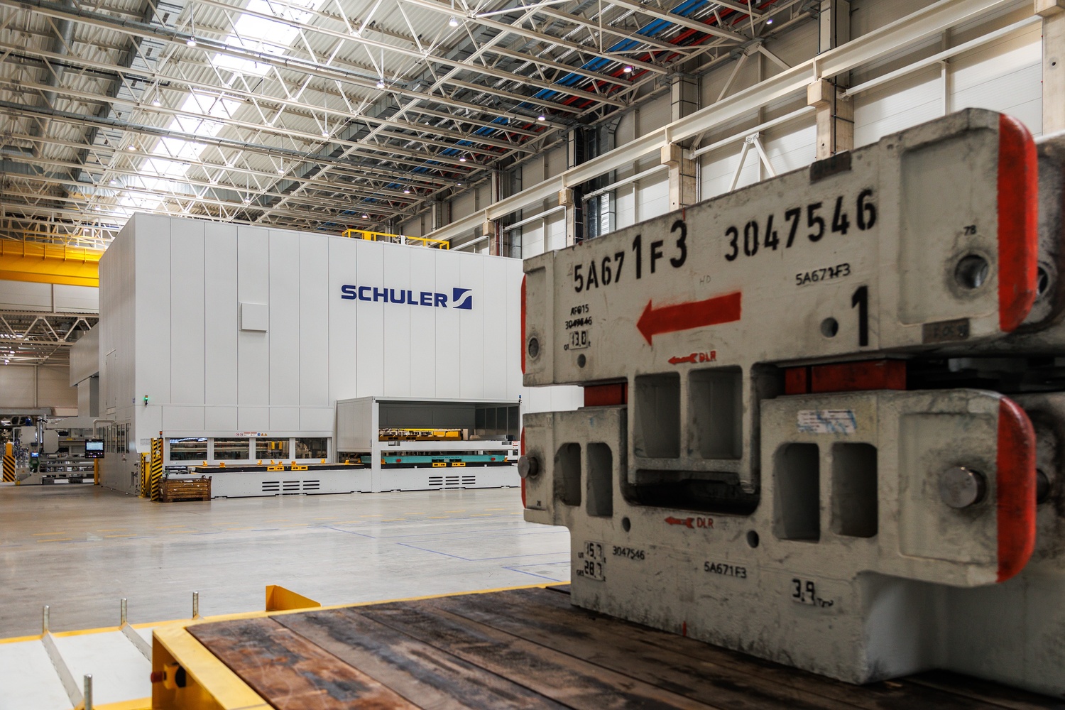 Ciclul de viață al unui vehicul începe în atelierul de presare, unde se produc primele componente din oțel și aluminiu. O macara de 55 de tone alimentează bobinele de oțel și aluminiu într-o linie de tăiere care produce până la 80 de tăieturi pe minut.