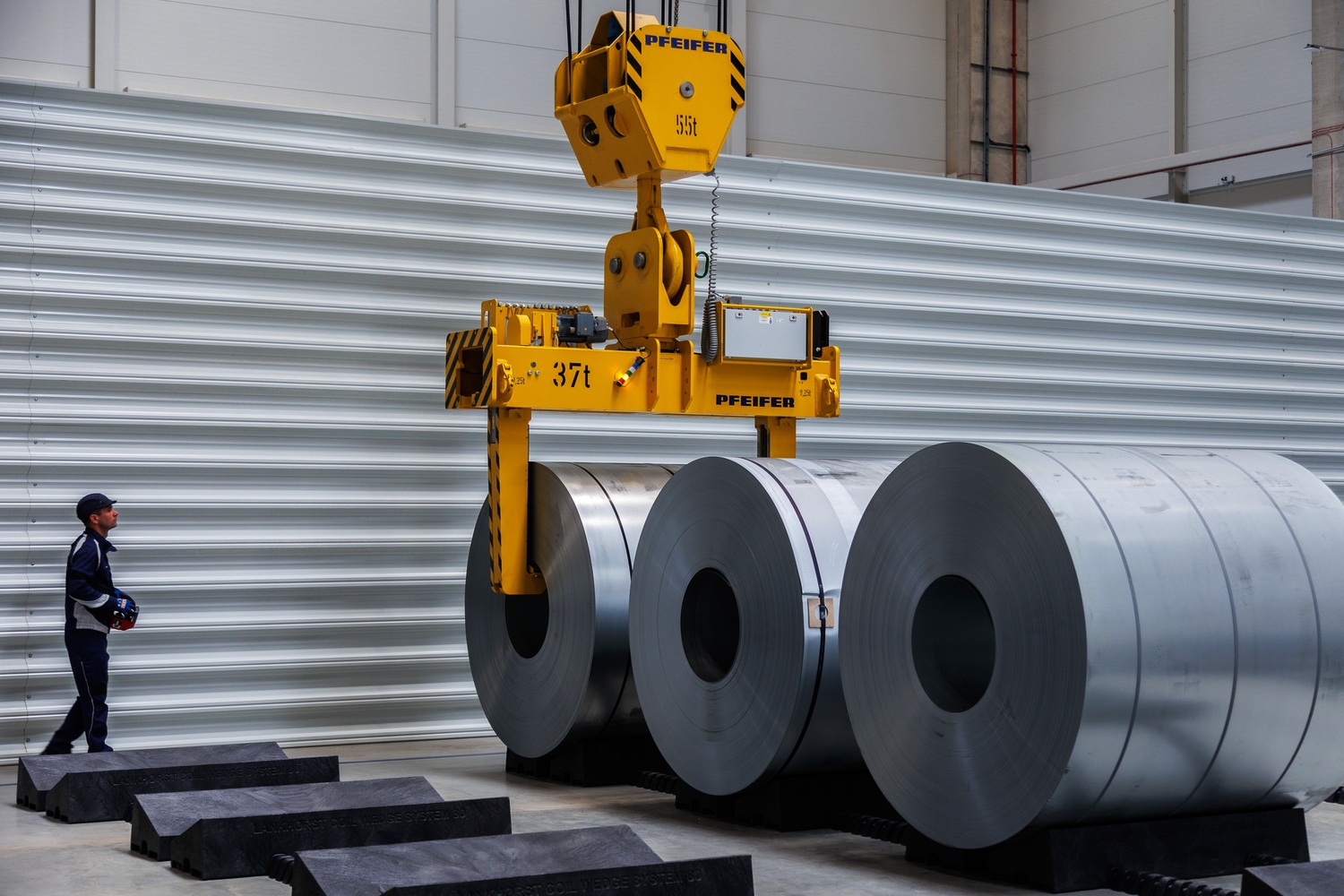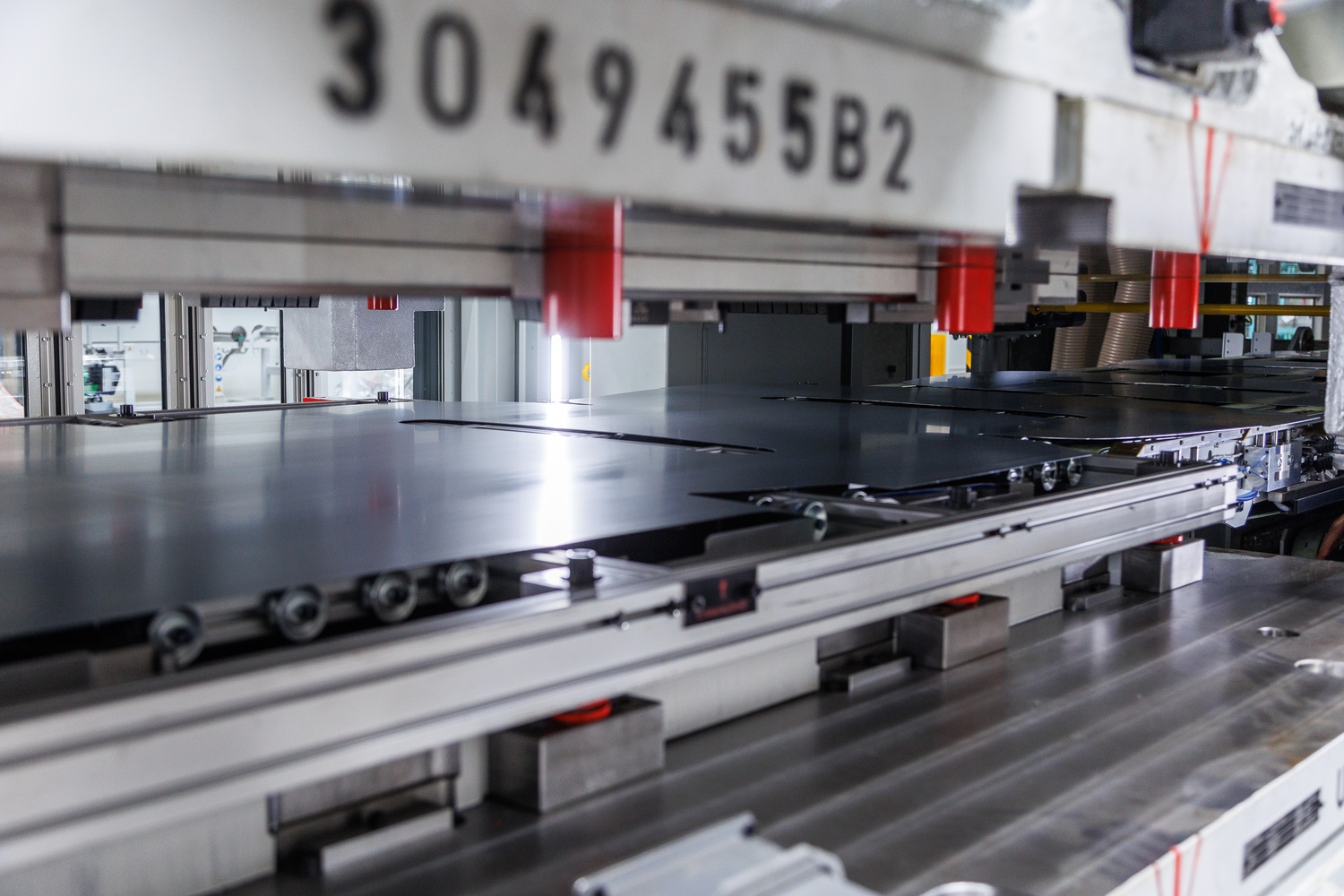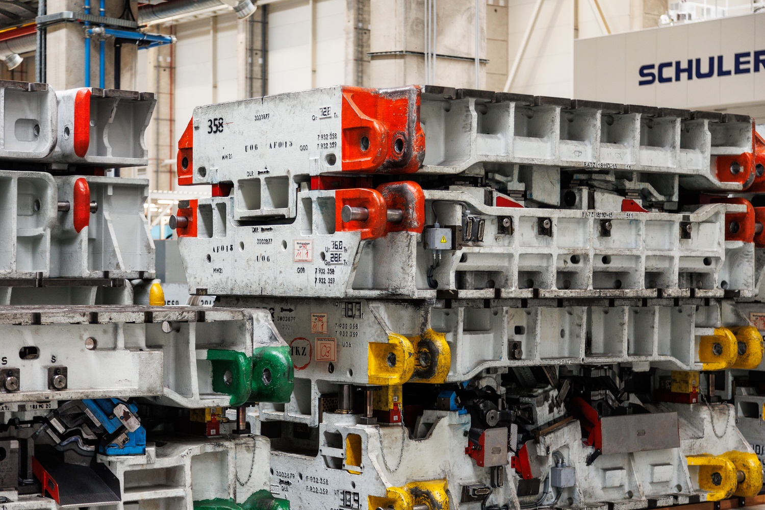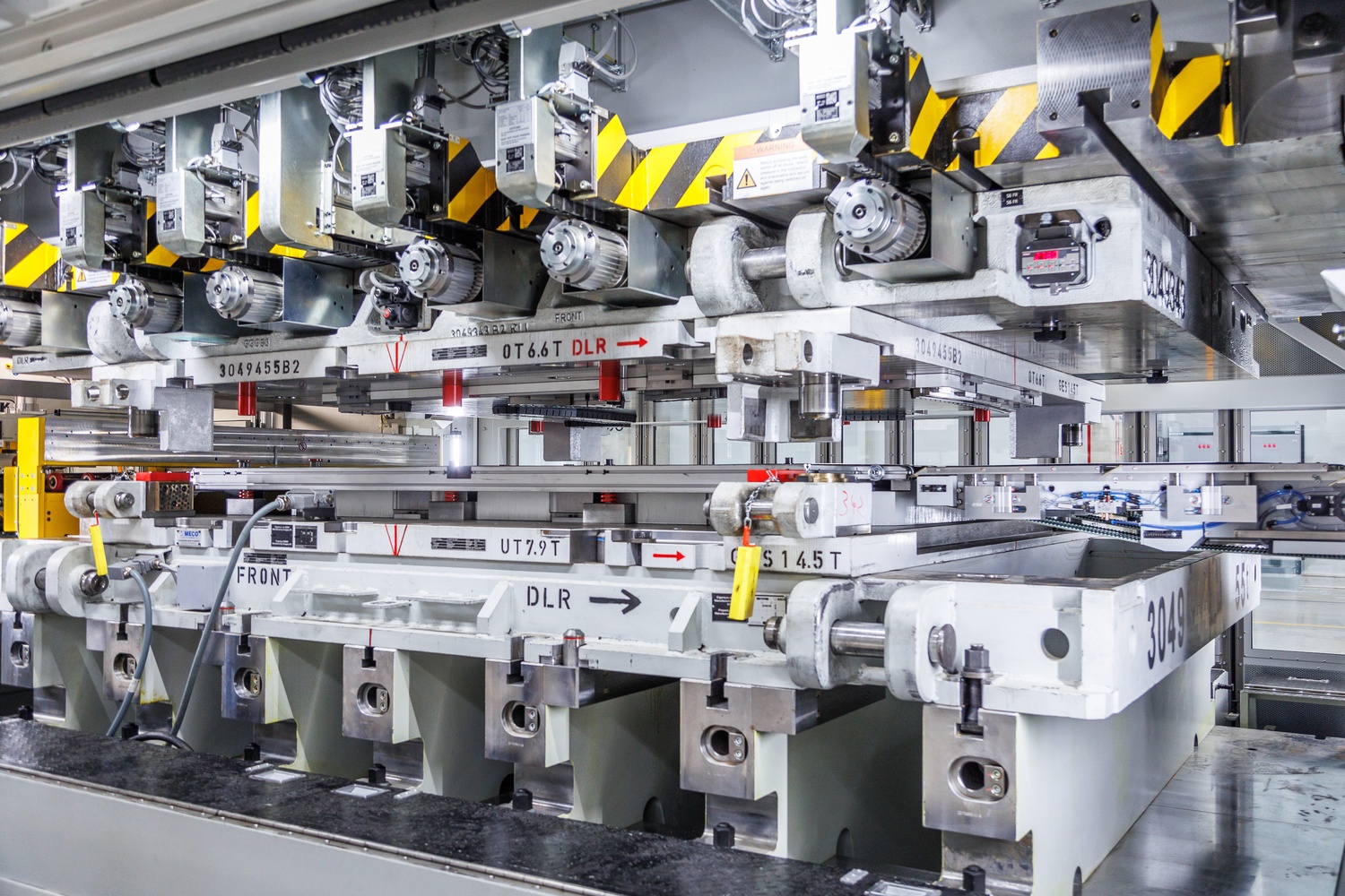 Ciclul de viață al unui vehicul începe în atelierul de presare, unde se produc primele componente din oțel și aluminiu. O macara de 55 de tone alimentează bobinele de oțel și aluminiu într-o linie de tăiere care produce până la 80 de tăieturi pe minut.