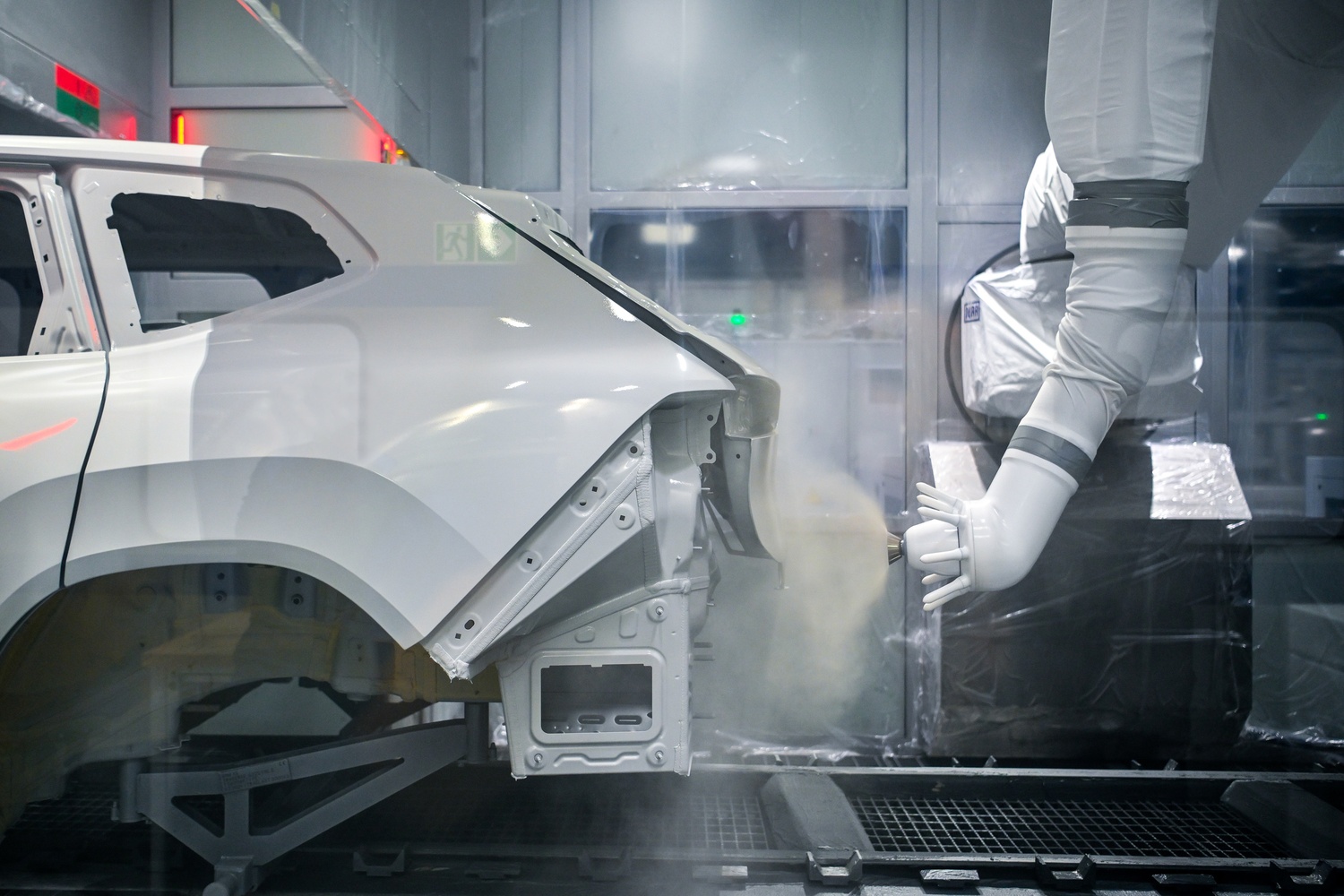 Purificarea aerului evacuat folosește procesul eRTO (oxidare termică regenerativă electrică), reducând consumul energetic cu până la 97 kWh per vehicul. Iar separarea uscată a vopselei cu pulbere de calcar reduce consumul de apă și permite reutilizarea materialelor.