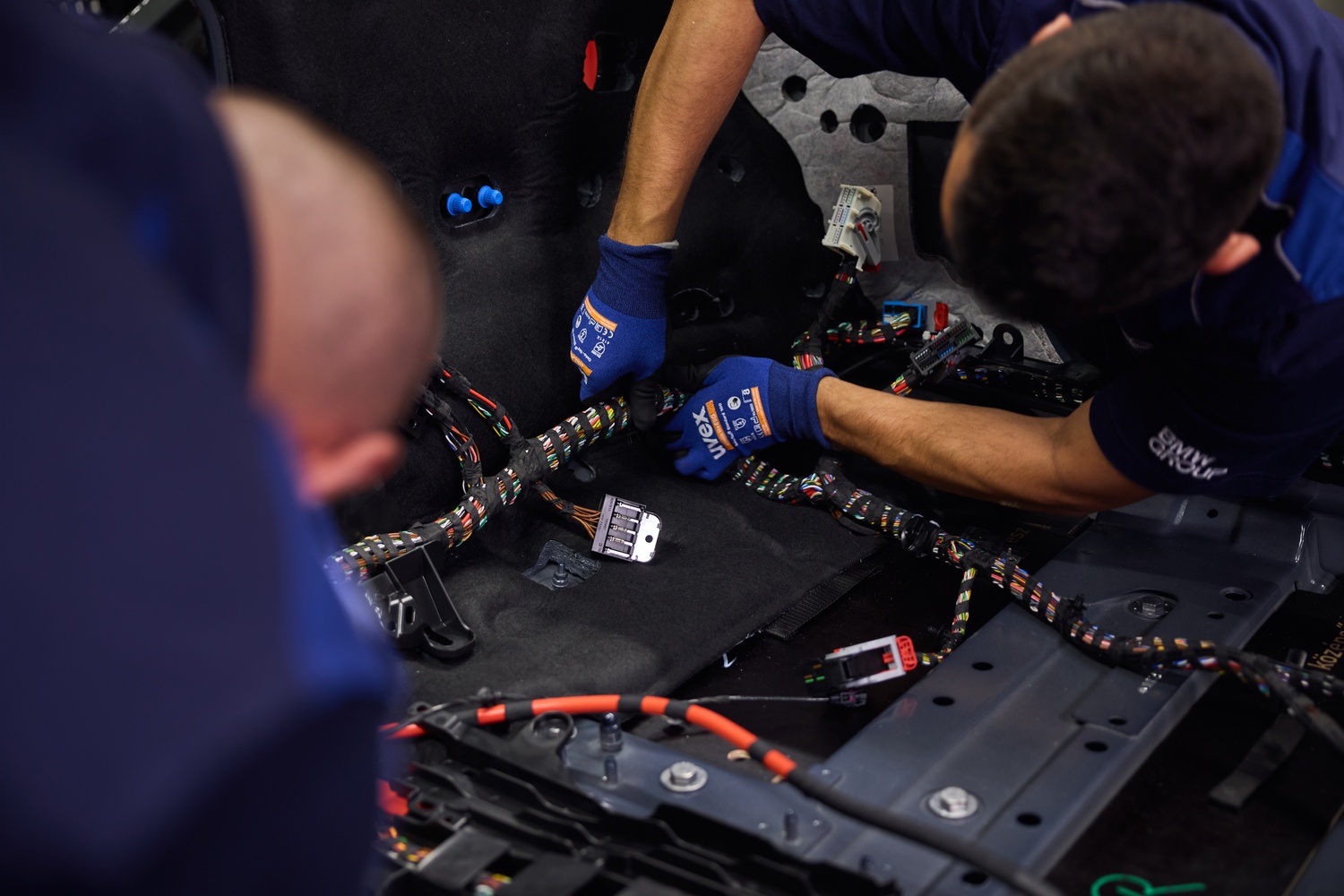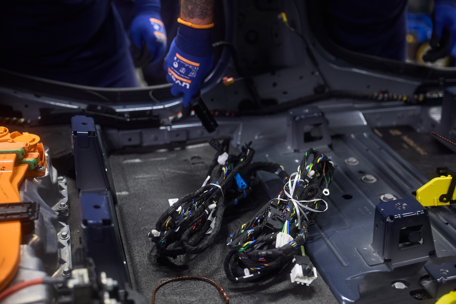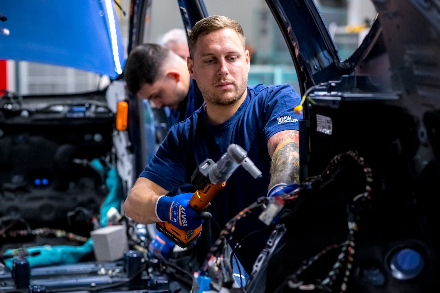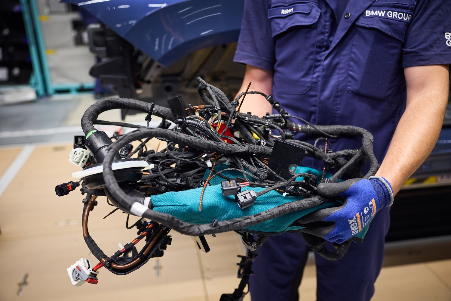 Arhitectura Neue Klasse reduce complexitatea prin modularizare, cu peste o treime mai puține componente la partea frontală și un cablaj divizat în patru zone (față, caroserie, spate, plafon), cu 600 m mai puțin cablu și 30% mai ușor. Spațiile de lucru reglabile pe înălțime îmbunătățesc ergonomia cu 30%, iar numărul redus de conectori simplifică asamblarea.