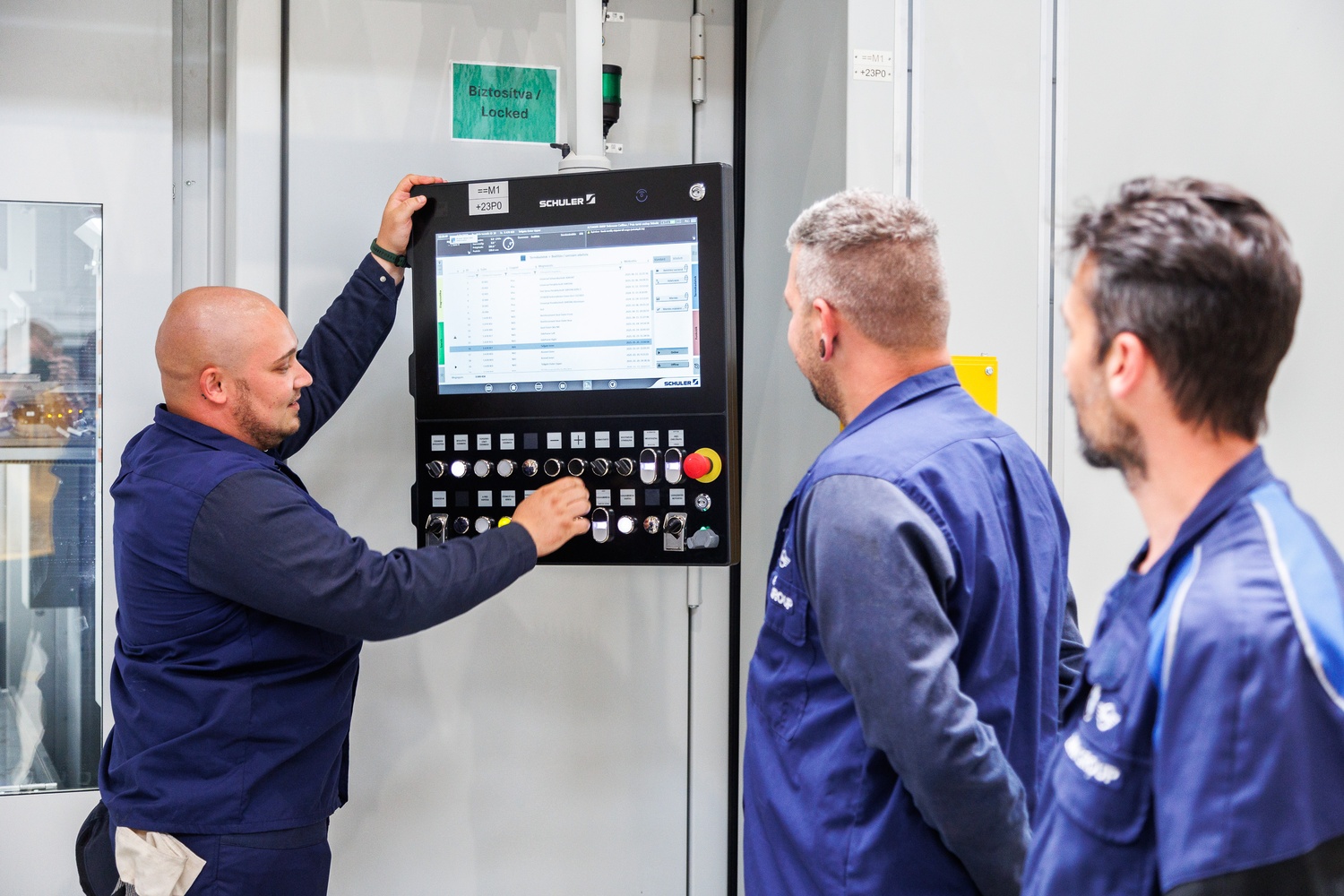 Aceste semifabricate sunt apoi modelate în linia de presare în cinci faze, utilizând tehnologie servo de ultimă generație, capabilă să producă peste 10.000 de componente zilnic, în funcție de dimensiune.