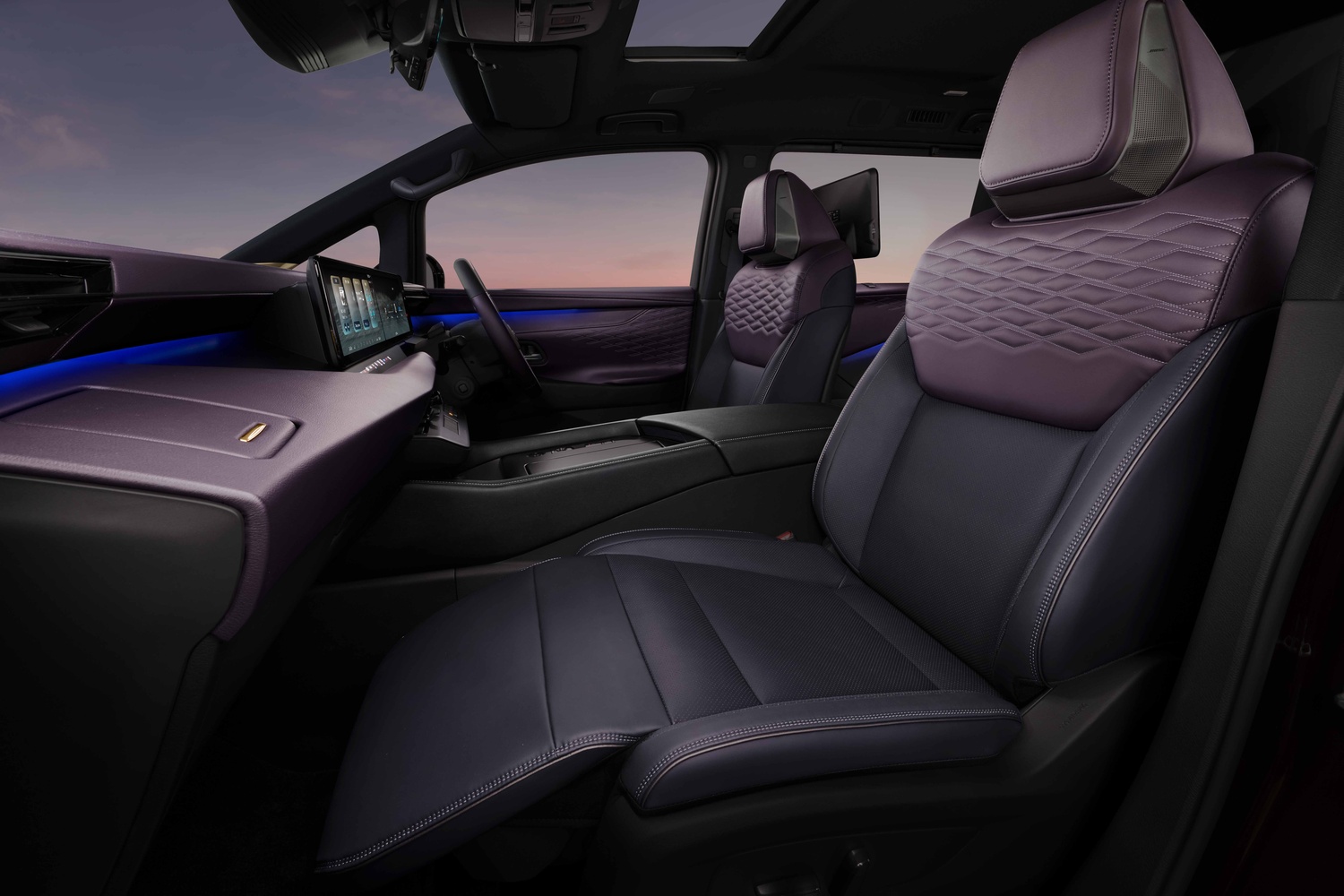 • Materiale premium: piele TailorFit™ în tonuri Shiitan (violet-albastru, simbolizând noblețe japoneză); cusături matlasate, inspirate de Kumiko, pe uși și scaune.