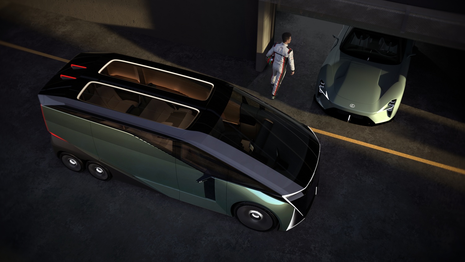 Formatul cu șase roți a fost adoptat pentru a maximiza spațiul interior, fără intruziuni ale roților, și pentru a acomoda uși largi care permit intrare și ieșire elegantă simultană pentru pasagerii din rândurile doi și trei. Lexus recunoaște că, global, oamenii nu aspiră la un singur tip de mașină. În loc de tradiția unui singur flagship, brandul ar trebui să aibă o serie de modele formând o săgeată. Cu LS Concept în frunte, aceasta este ilustrată de o serie de alte noi concepte inspirate de LS.