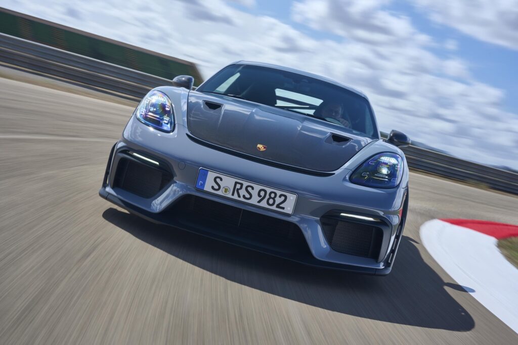 - În combinație cu o gardă la sol mai mică cu 30 mm în comparație cu 718 Cayman, orificiile de ventilație atrăgătoare de pe pasajele roților frontale, panourile de sub caroserie optimizate aerodinamic şi conectate cu difuzorul posterior, un difuzorul frontal multi-reglabil și noua buză a spoilerului frontal cu lame laterale, în modul Performance rezervat utilizării pe circuite, noul GT4 RS generează cu aproximativ 25% mai multă forță de apăsare decât un GT4.