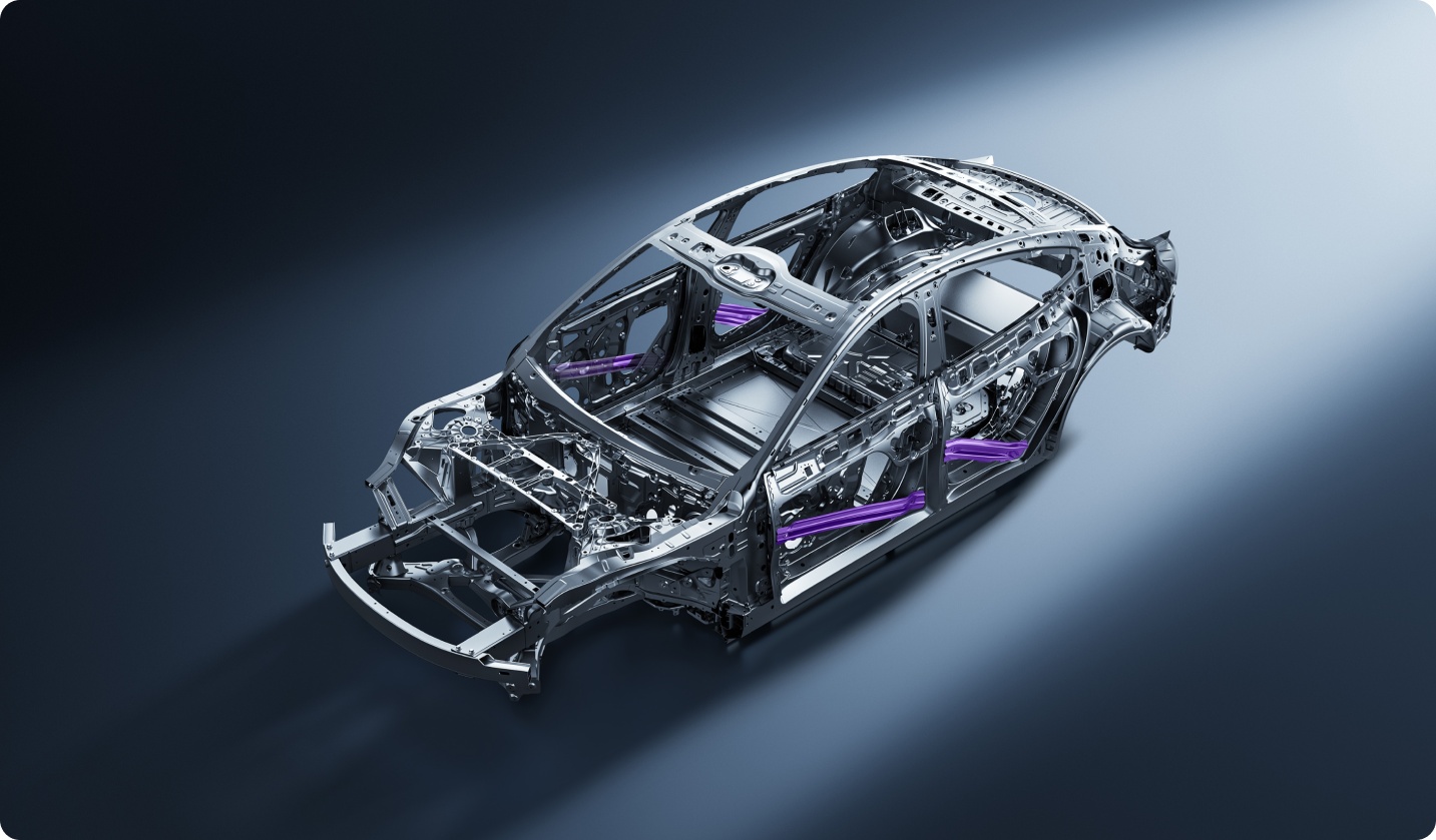 - Barele laterale din oțel de 2200 MPa, nou adăugate în uși, cresc capacitatea de încărcare cu peste 28% față de oțelul de 1500 MPa.