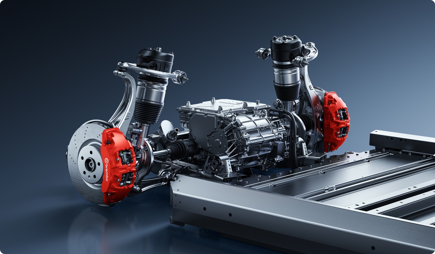 - Arcuri pneumatice cu cameră dublă și amortizoare CDC (standard doar pe Pro și Max, indisponibile pe versiunea de bază): Detectează automat condițiile drumului și ajustează activ sistemul de amortizoare. Suportă reglaj cu memorie a înălțimii pe bază de locație GPS.