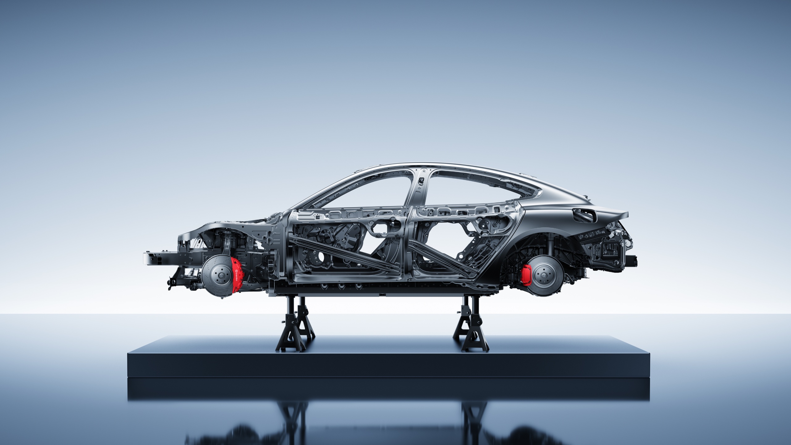 - Oțel ultra-rezistent de 2200 MPa (+200 MPa) și aliaj de aluminiu reprezintă 90.3% din structură.