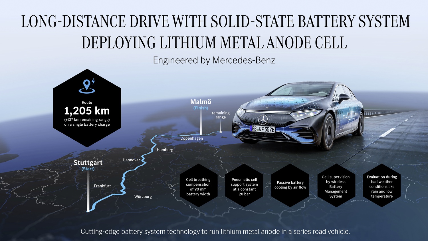 EQS, 1205 km, baterie solid-state, Mercedes-AMG HPP, Factorial Energy, Stuttgart-Malmö, Electric Intelligence, FEST, record autonomie,