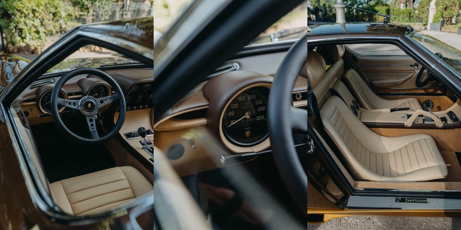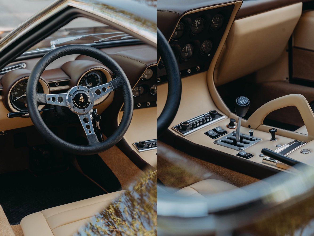 O atenție deosebită a fost acordată vopselei. Nuanța exterioară „Luci del Bosco” (maro) a fost restaurată, combinată cu interiorul „Senape” (galben-muștar). Această combinație a necesitat cercetări istorice suplimentare, deoarece nuanța „Luci del Bosco” a evoluat de-a lungul timpului și pe diferite modele Lamborghini.