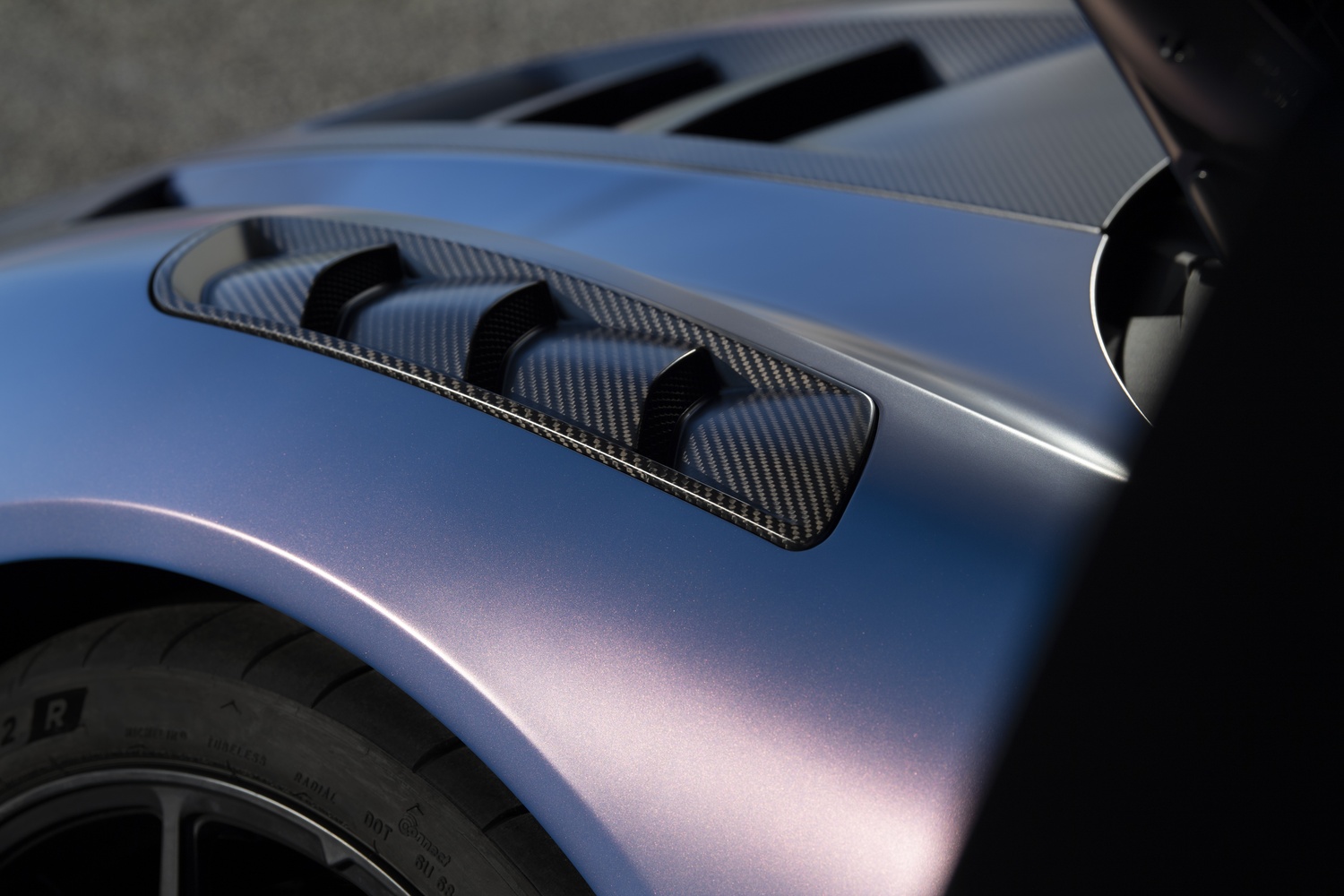 - De la mașina de curse a preluat aerodinamica elaborată și șasiul din fibră de carbon. Sunt instalate prize de aer mari, sunt realizate orificii de ventilație suplimentare în carenajul frontal și în pasajele roților, iar la posterior are o aripă mare din fibră de carbon.