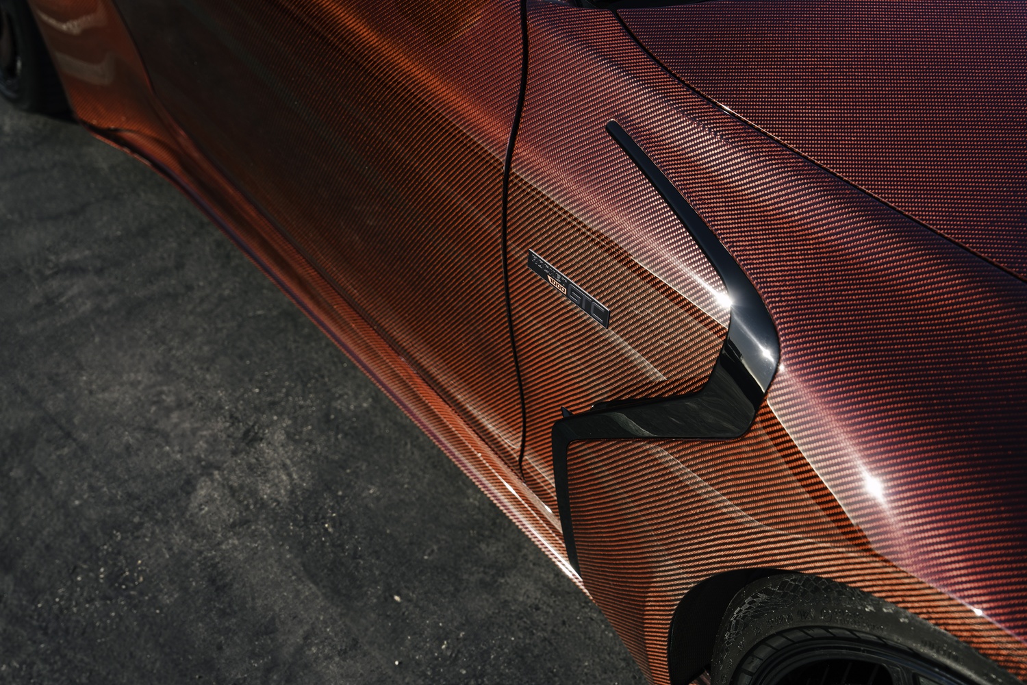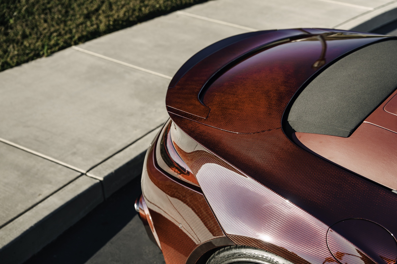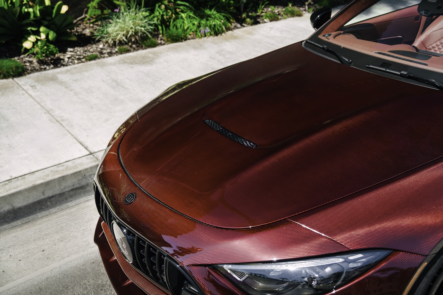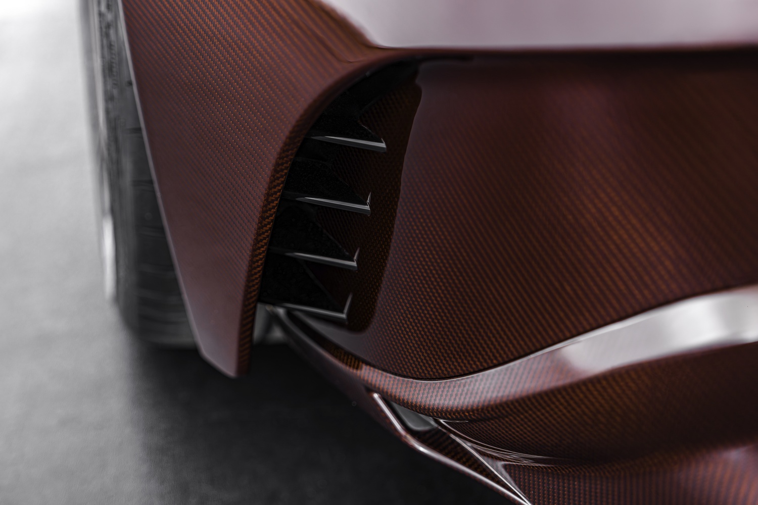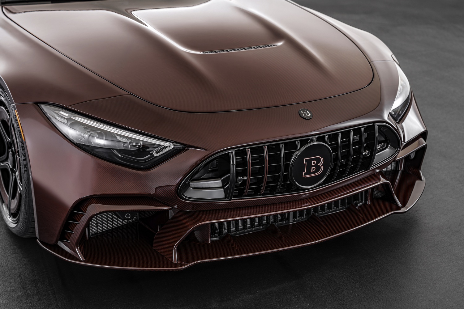 - BRABUS ROCKET GTC DEEP RED impresionează prin caroseria sa custom, realizată integral din carbon cu structură expusă de culoare roșie, finisată cu un strat transparent roșu prin procesul depreimpregnare în autoclavă (cuptor special). Această structură, optimizată apoi în tunelul aerodinamic, generează forță de apăsare suplimentară pe ambele punți, fiind completată de prize de aer mari pentru radiatoare și frâne.