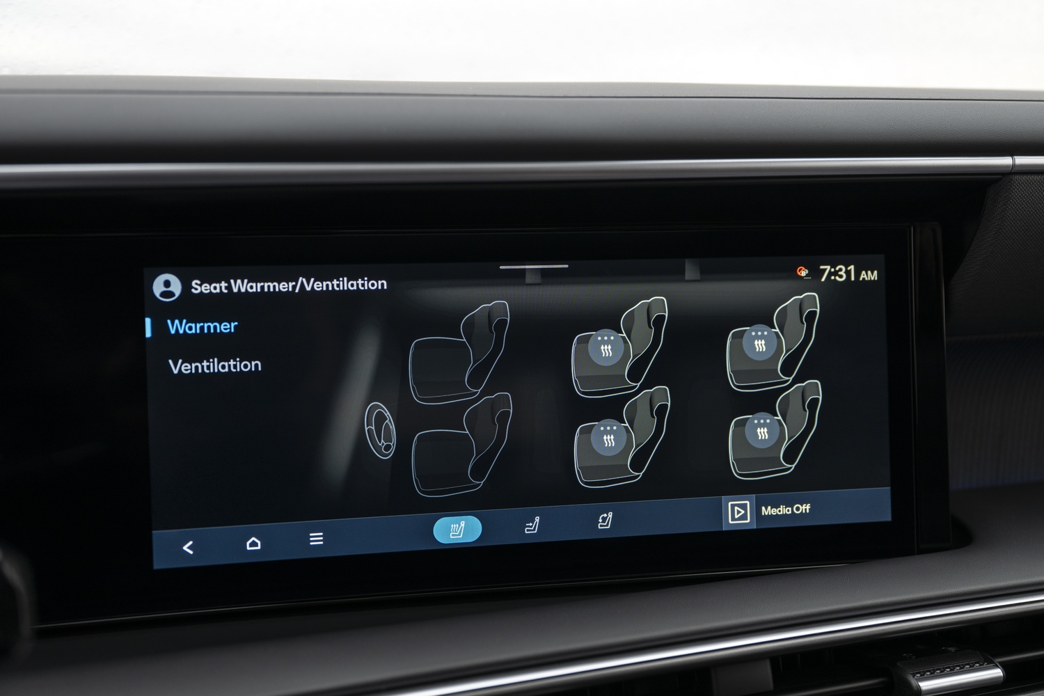 - Scaune tapițate cu piele artificială H-Tex, cu încălzire și ventilație în față.