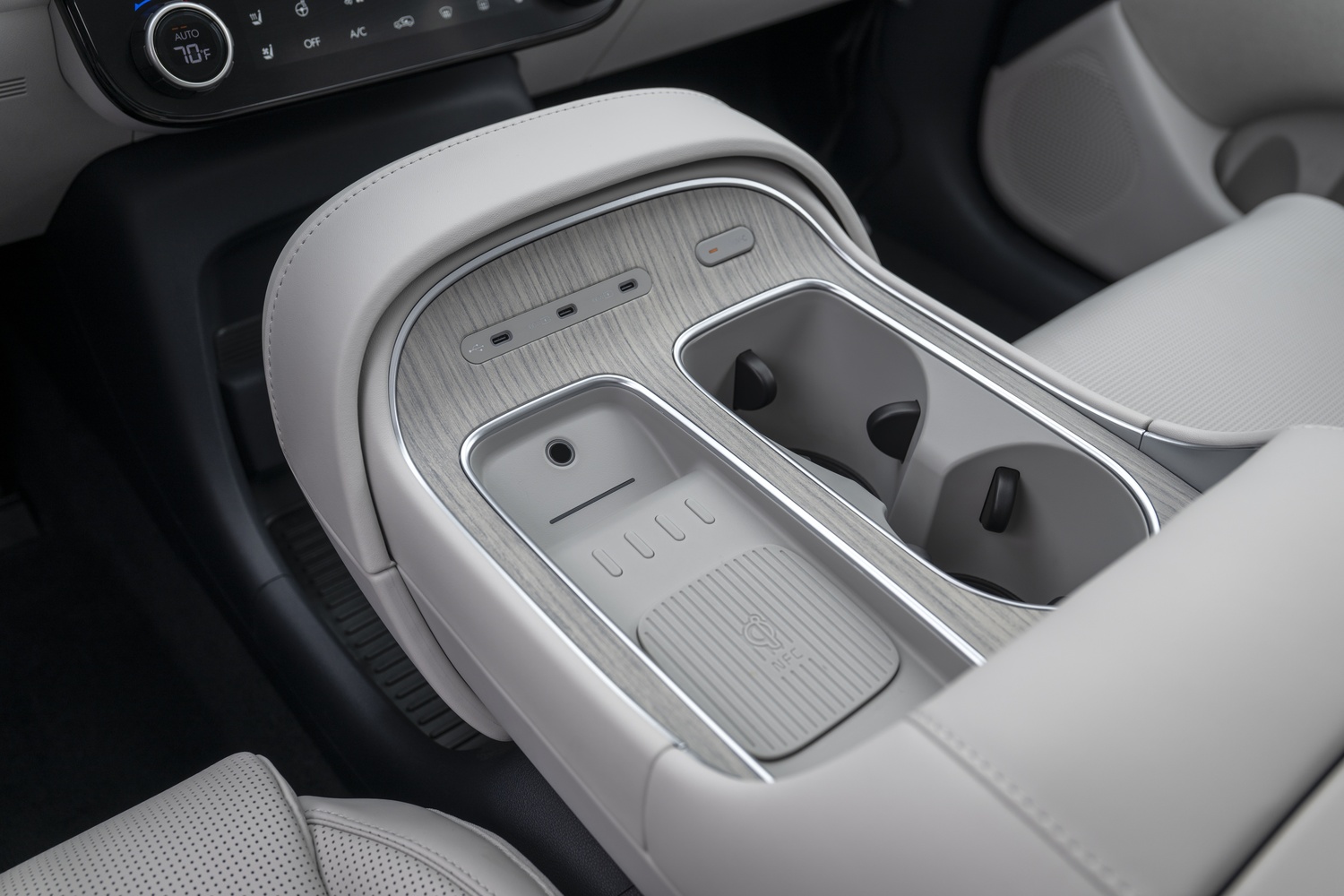 - Consolă centrală cu design ergonomic, spațiu de depozitare cu capac dublu.
