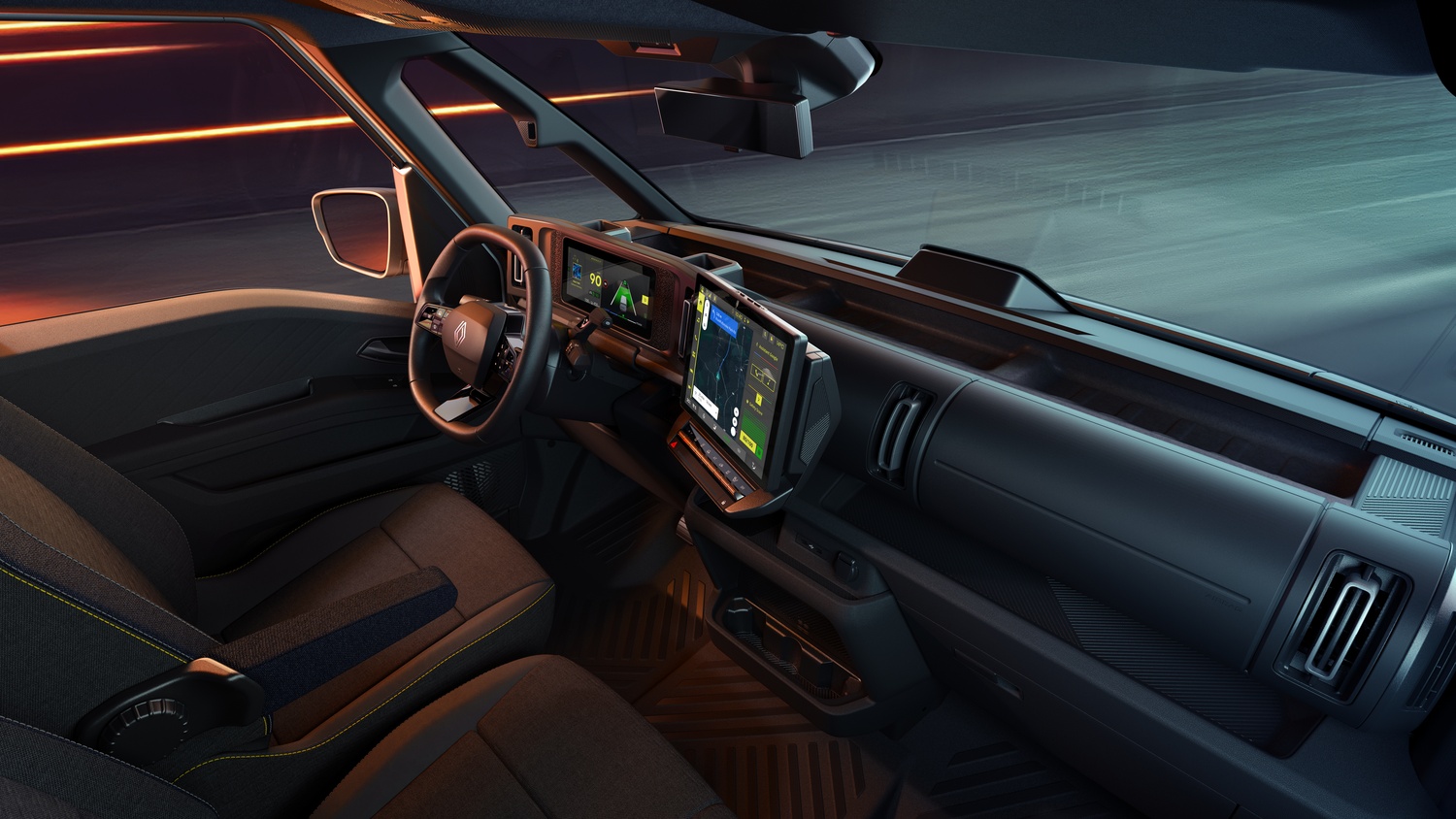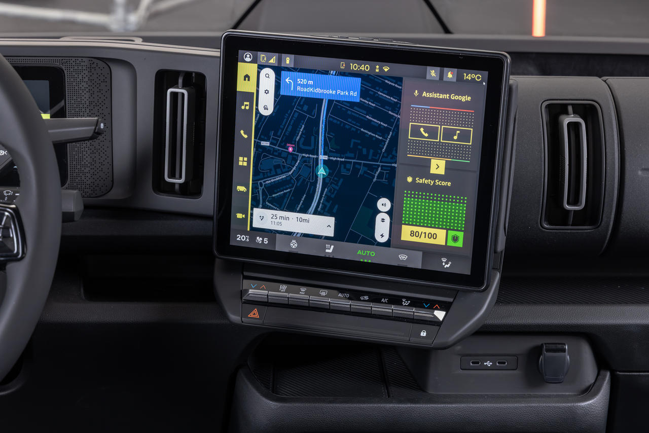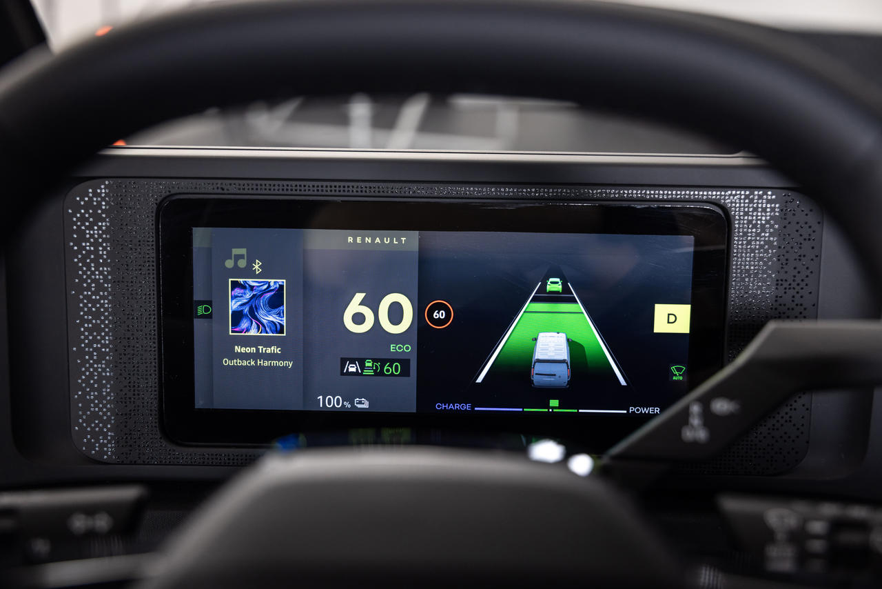 - Ecran de 12 inchi (cel mai mare din gama LCV Renault), cu navigație optimizată pentru LCV-uri (trasee adaptate dimensiunilor și sarcinii).