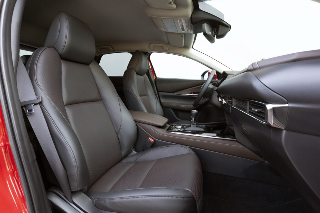 În ceea ce privește siguranța pasivă, pe lângă componentele și structurile noii arhitecturi a caroseriei, noua Mazda CX-30 vine echipată cu airbag pentru genunchi, care elimină deplasarea în față a corpului șoferului în cazul unei coliziuni și reduce efectele acesteia asupra șoferului prin diminuarea sarcinii care trebuie susținută de centura de siguranță. De asemenea, capota și bara frontală au structuri noi, care permit absorbția mai ușoară a energiei la impactul cu un pieton.