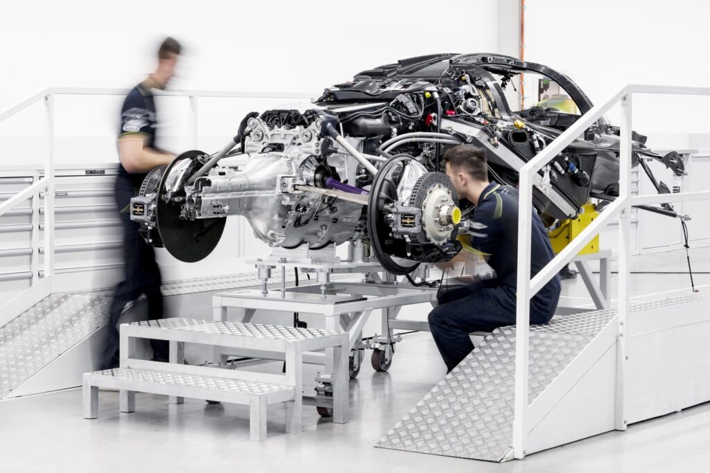Amintim că Valkyrie este echipat cu un unic V12 natural aspirat de 6.5 litri, dezvoltat împreună cu Cosworth. Se poate roti până la 11.100 rpm și produce aproximativ 1000 de cai putere. Cutia de viteze este una robotizată cu şapte trepte marca Ricardo şi are integrată un motor electric. Acesta, cât şi bateria, sunt livrate de Rimac.
