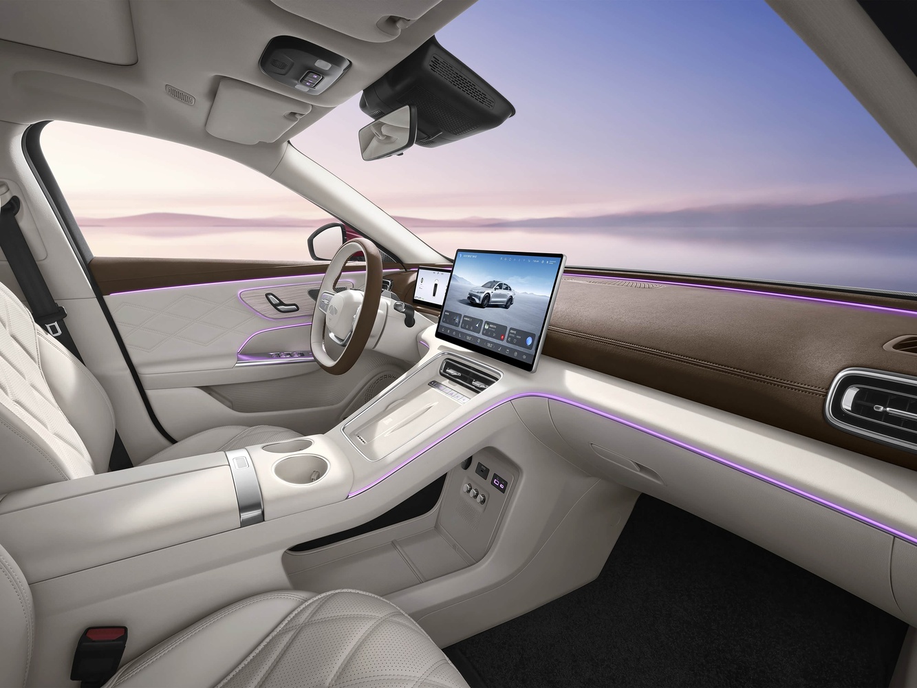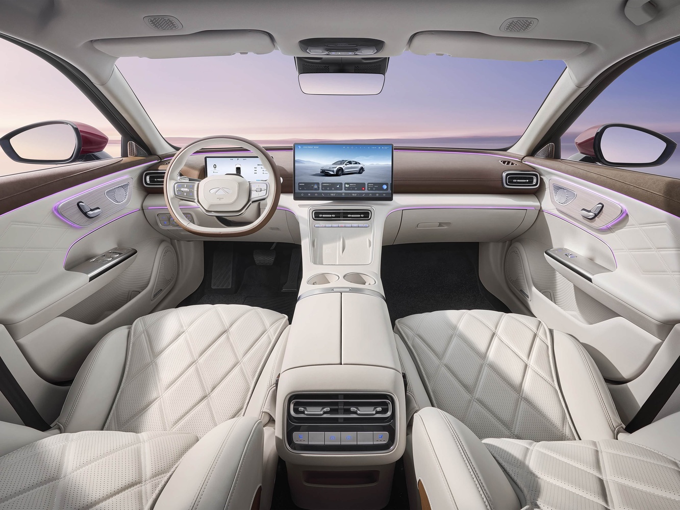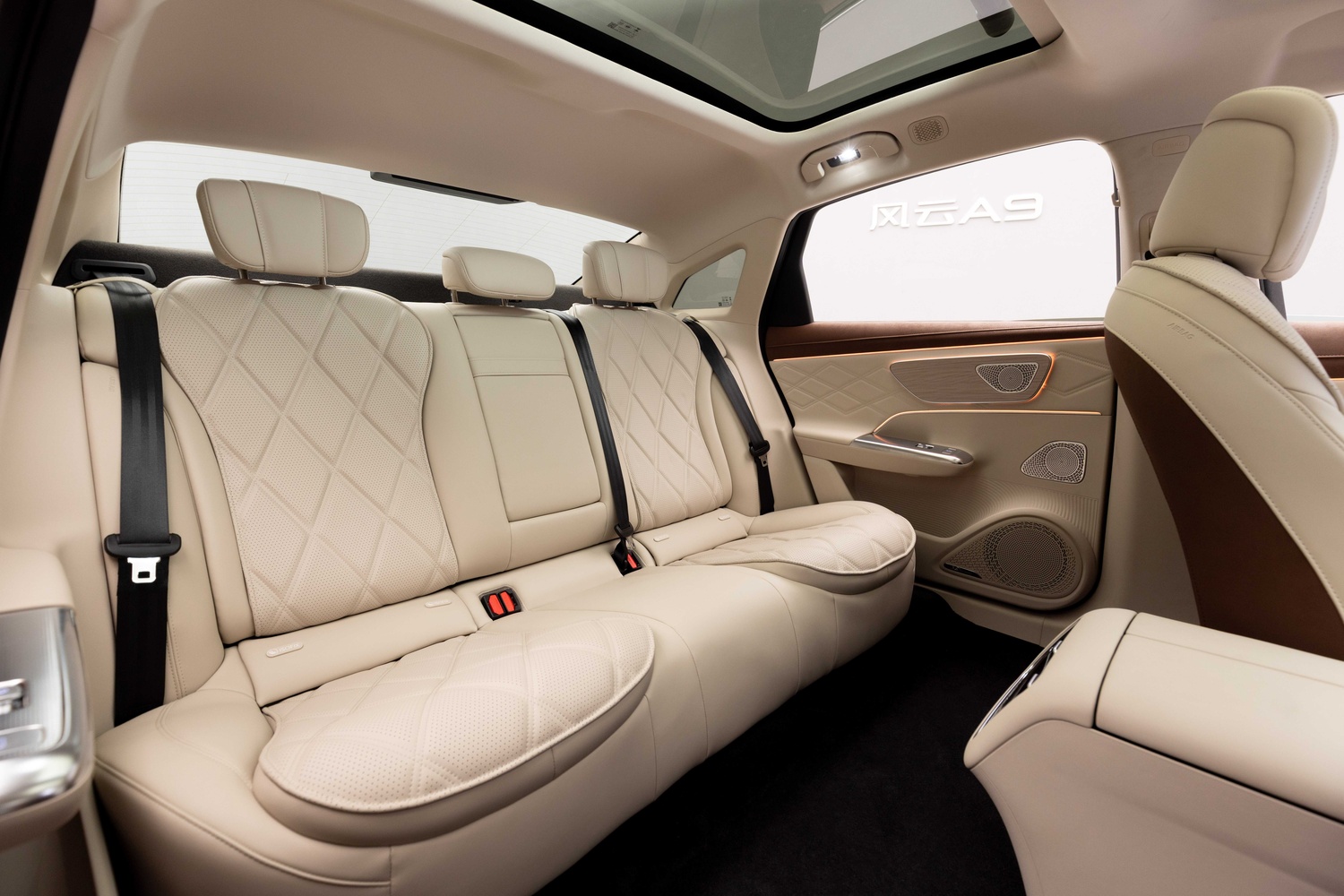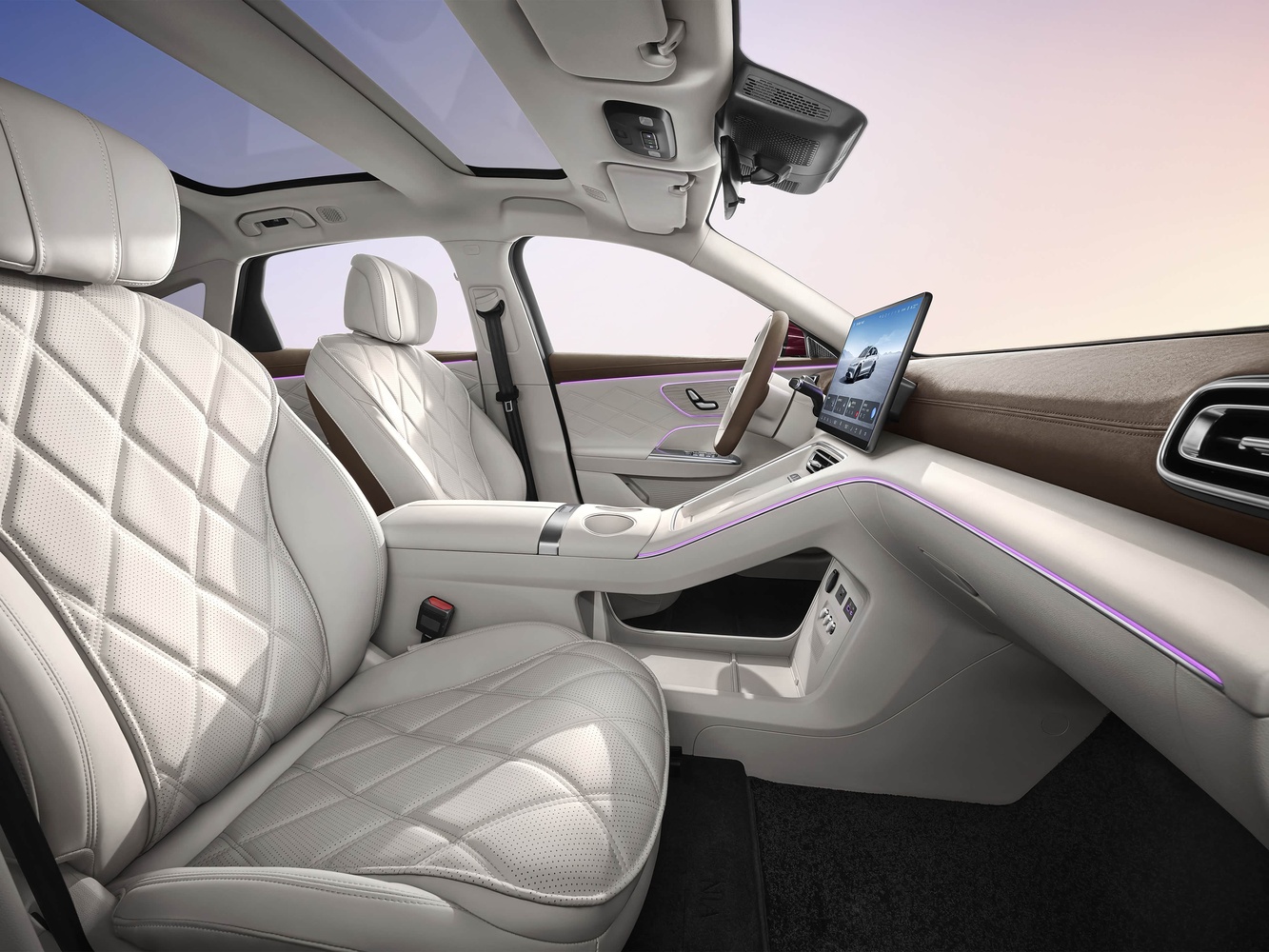 - Scaune „Shuyun” cu structură de 13 straturi, cusături duble în stil Maybach și scaun pasager cu funcție Zero Gravity pentru distribuție uniformă a presiunii corporale.