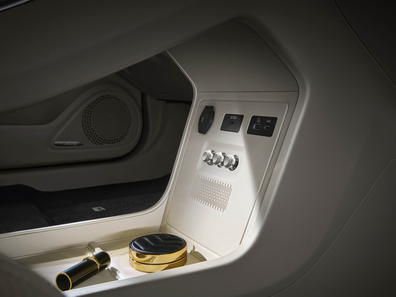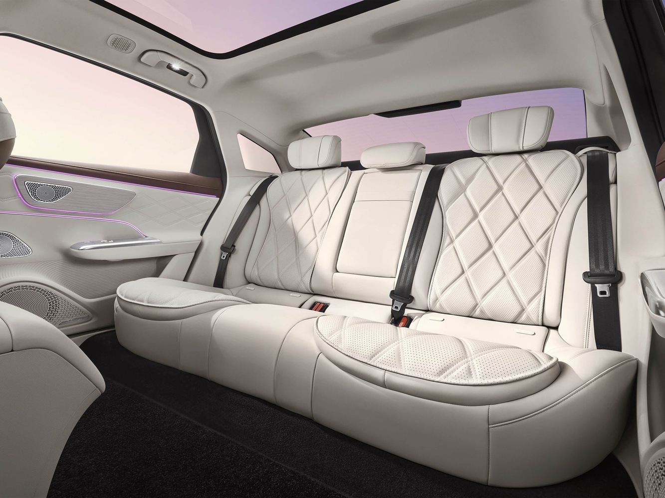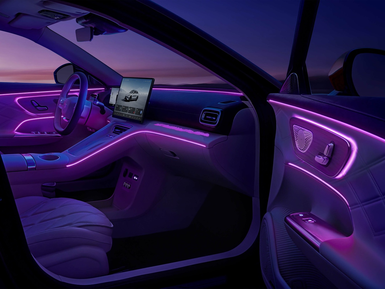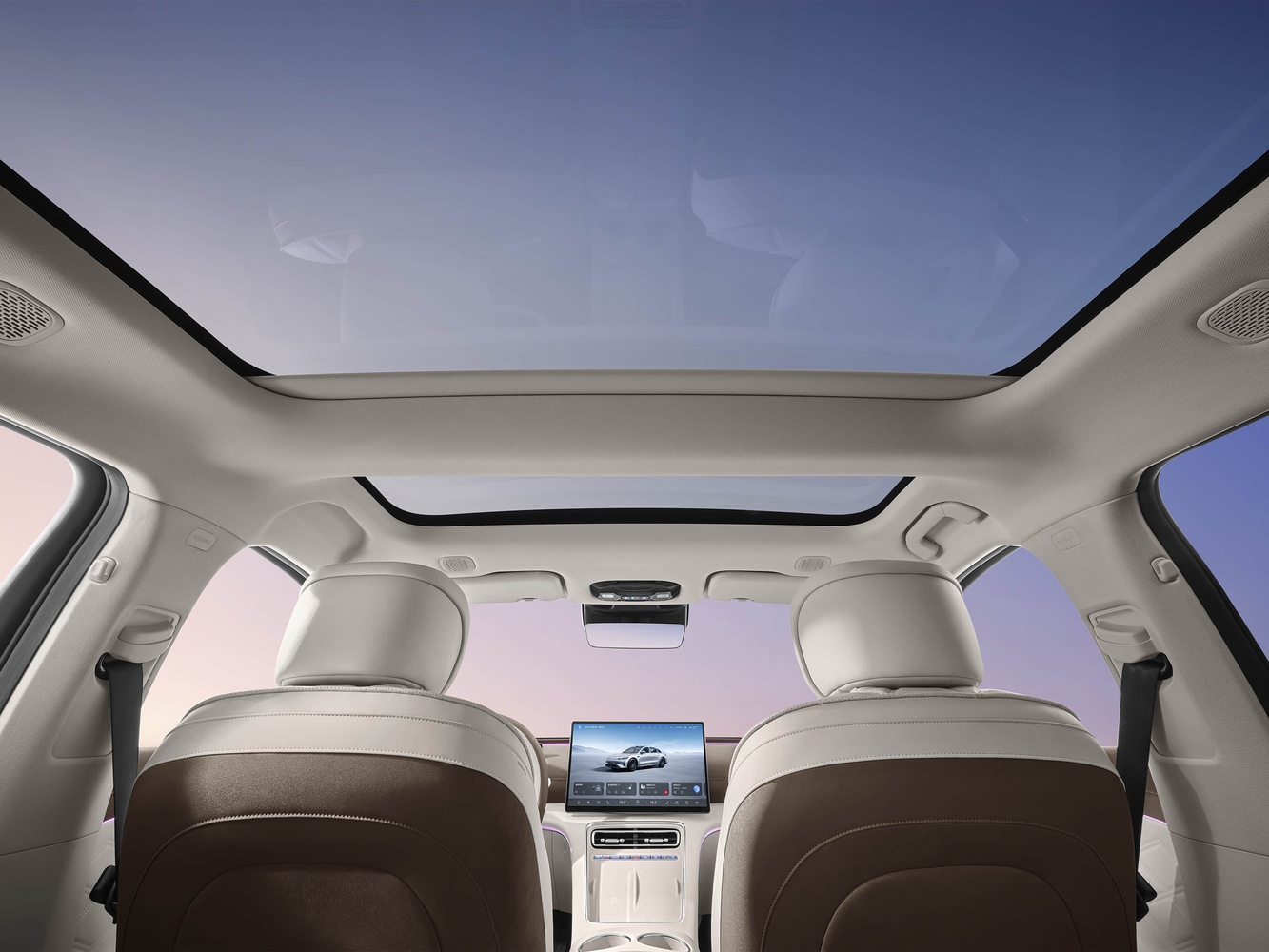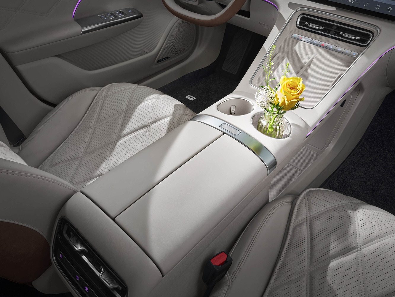 - Scaune „Shuyun” cu structură de 13 straturi, cusături duble în stil Maybach și scaun pasager cu funcție Zero Gravity pentru distribuție uniformă a presiunii corporale.