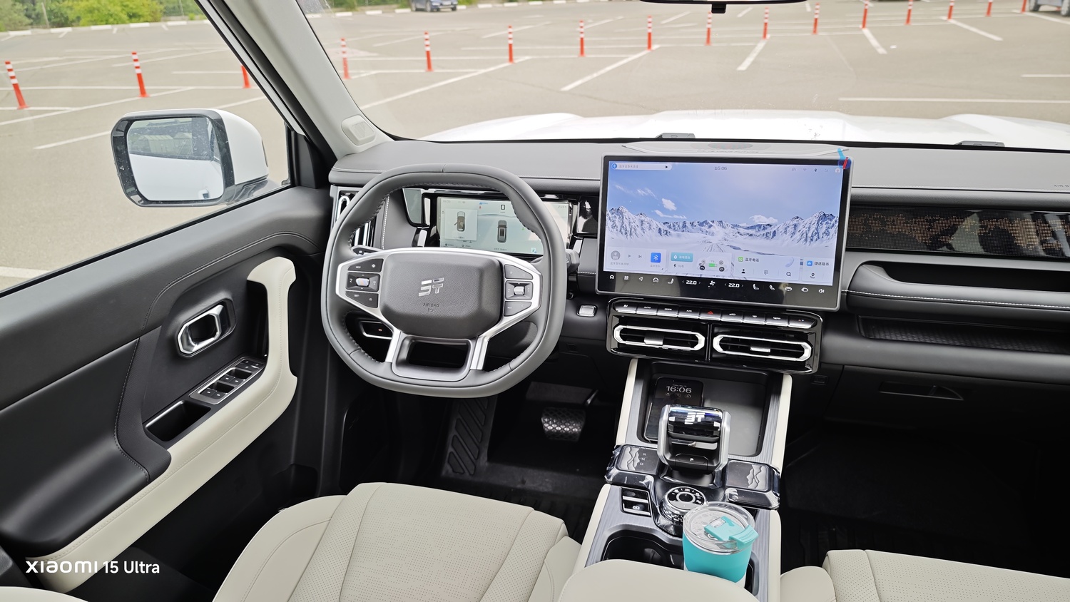 Un monitor central de 15.6 inchi, cu sistem multimedia alimentat de un cip Qualcomm Snapdragon 8155, afișează informații clare, deși limba chineză nu a fost încă schimbată în engleză. Iar comenzile pentru climatizare sunt accesibile direct, fără a naviga prin meniuri, spre deosebire de alte modele Jetour.