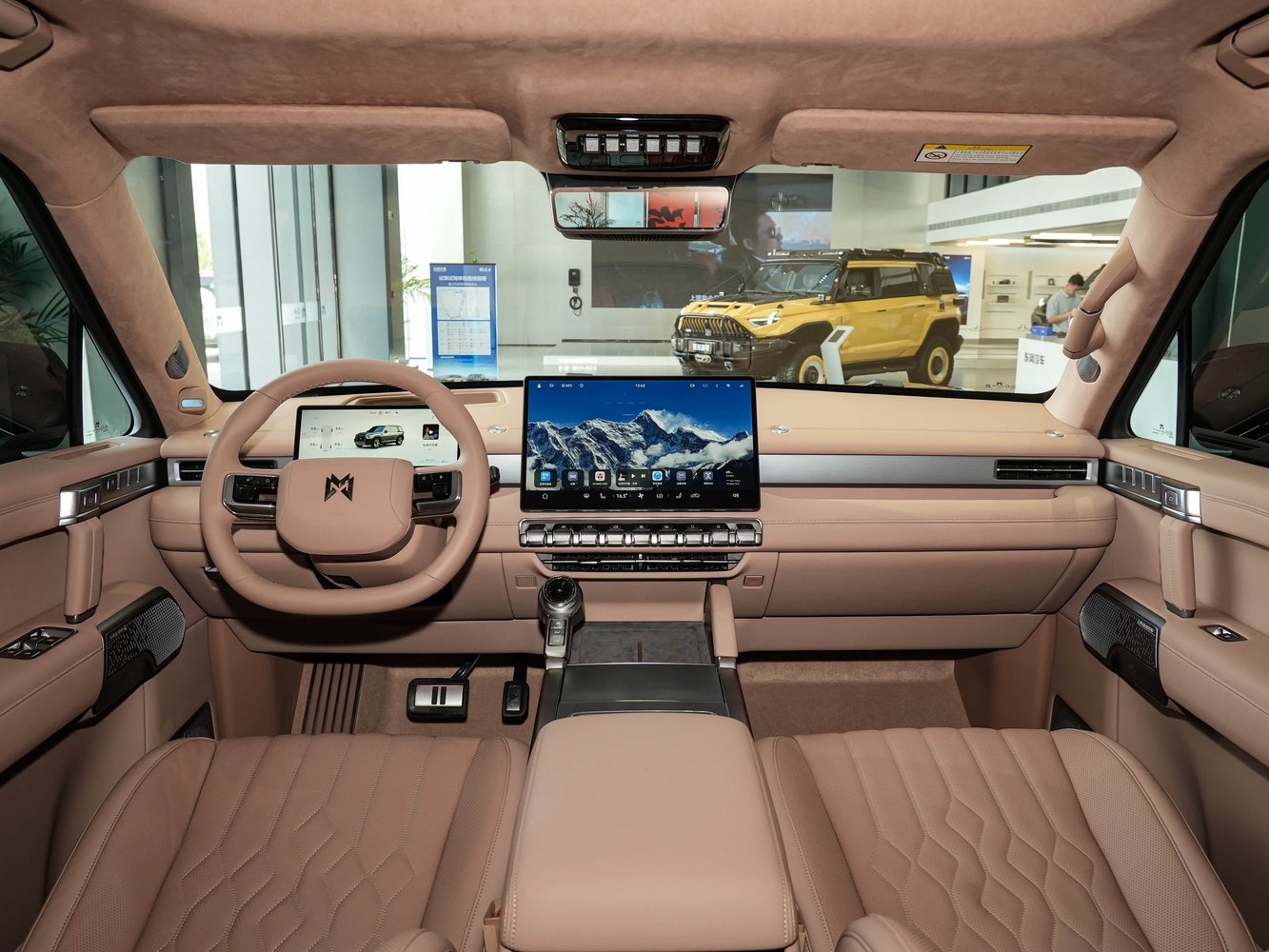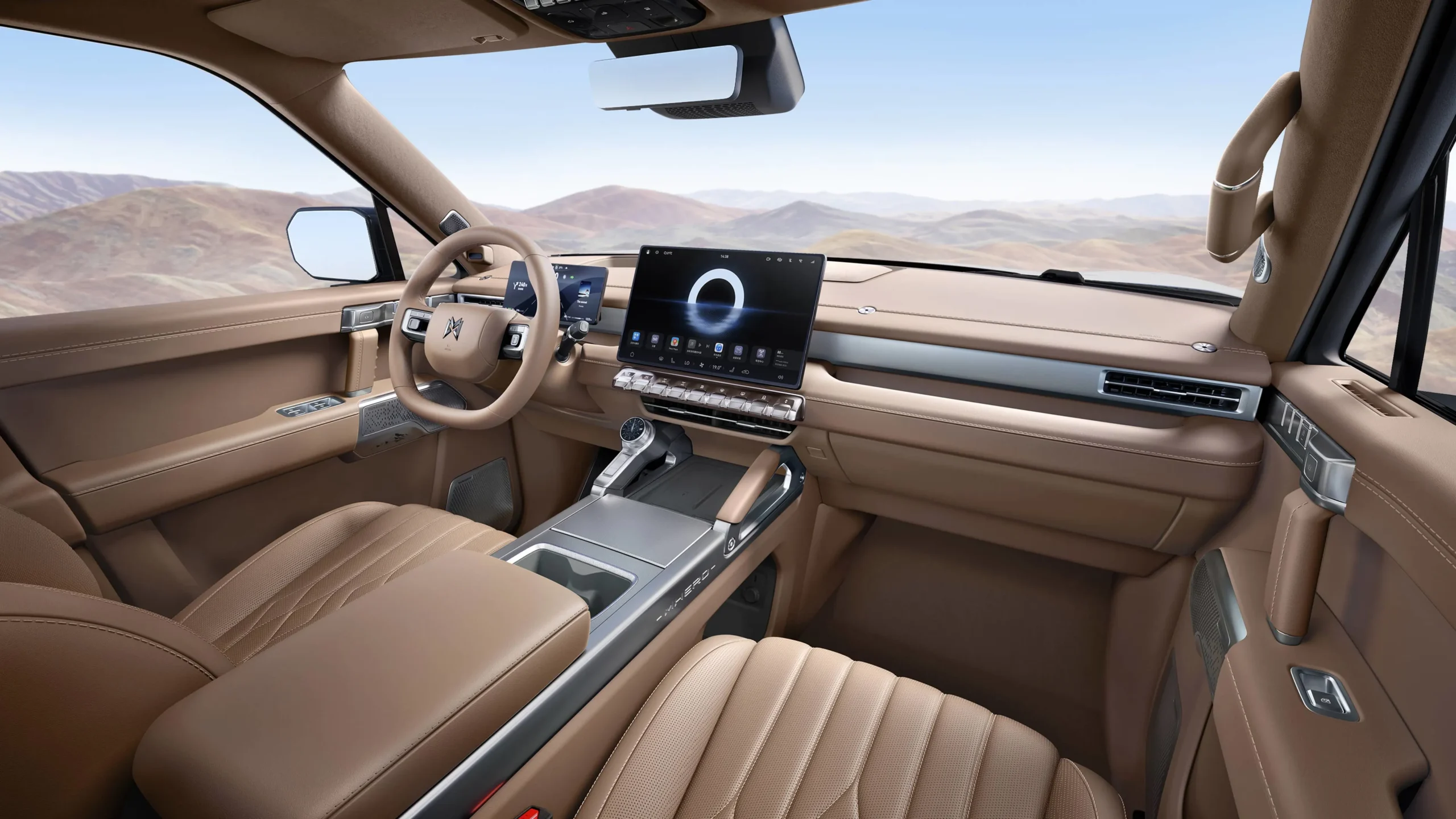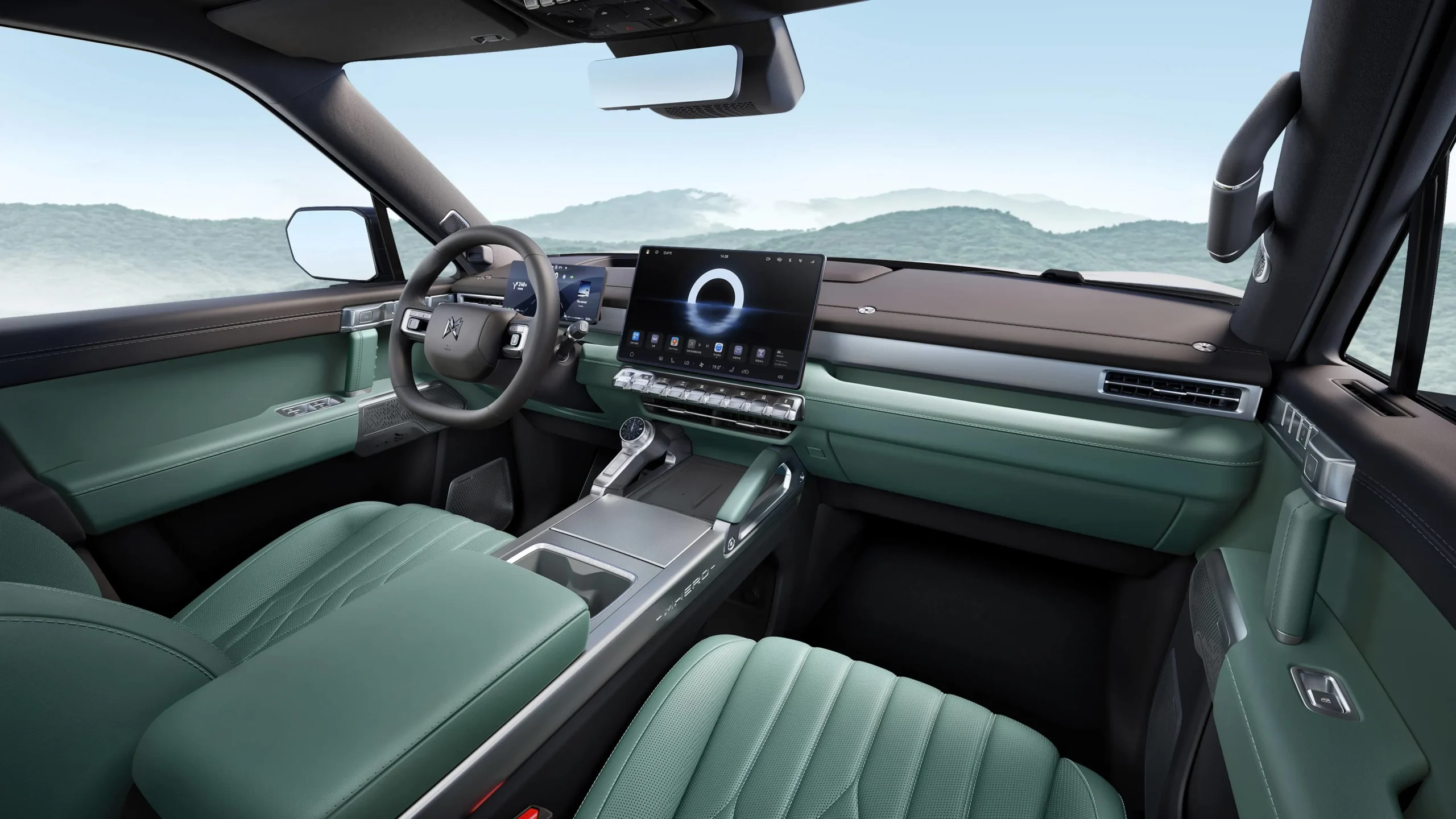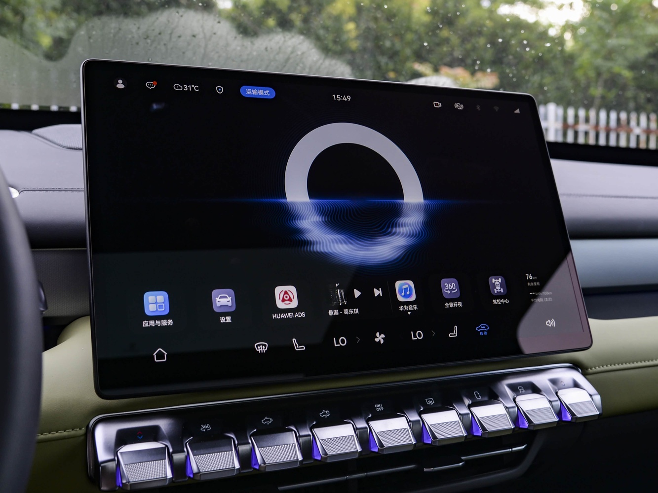 - Șase ecrane: instrumentar de 10.25 inci, head-up display, ecran central de 15.6 inchi (cu sistem multimedia HarmonyOS 5 de la Huawei), oglindă retrovizoare digitală, un controller compact pe consola centrală cu ecran integrat (ceas, busolă, moduri de conducere), dar și un ecran posterior.
