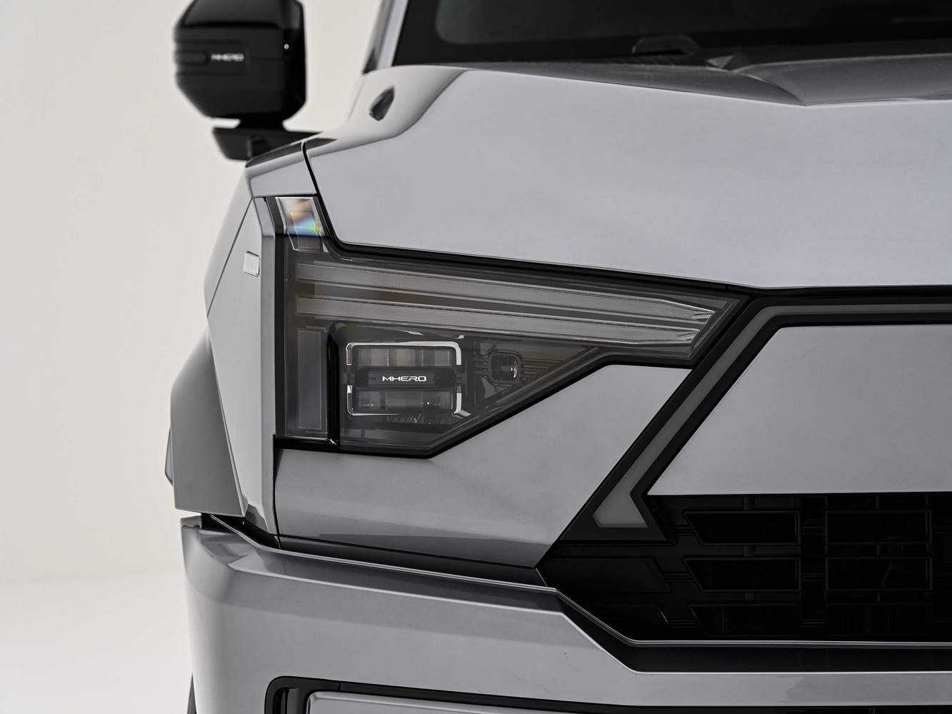 - Grilă „Lion Roar” cu logo M iluminat, simbolizând puterea și tehnologia.