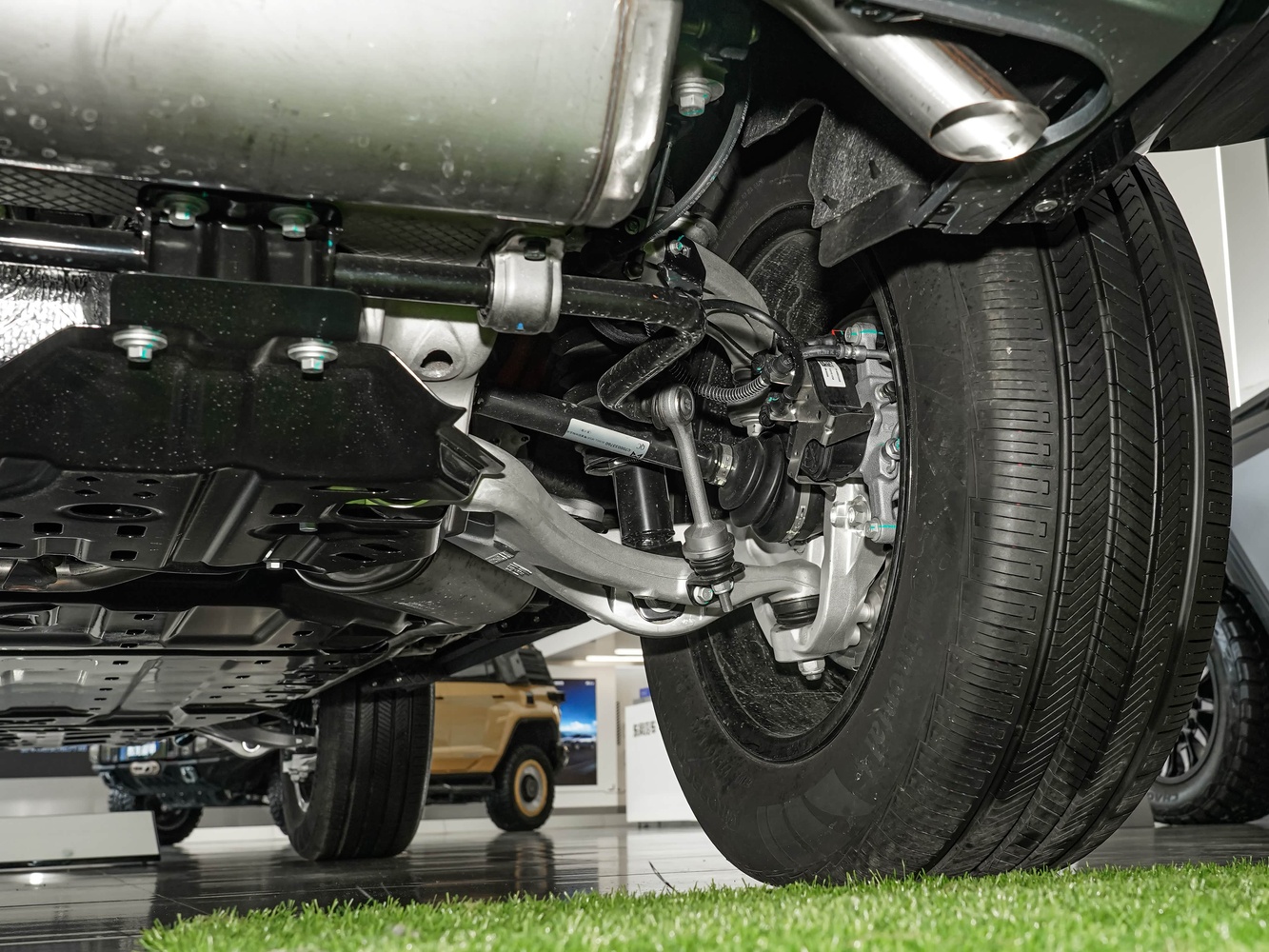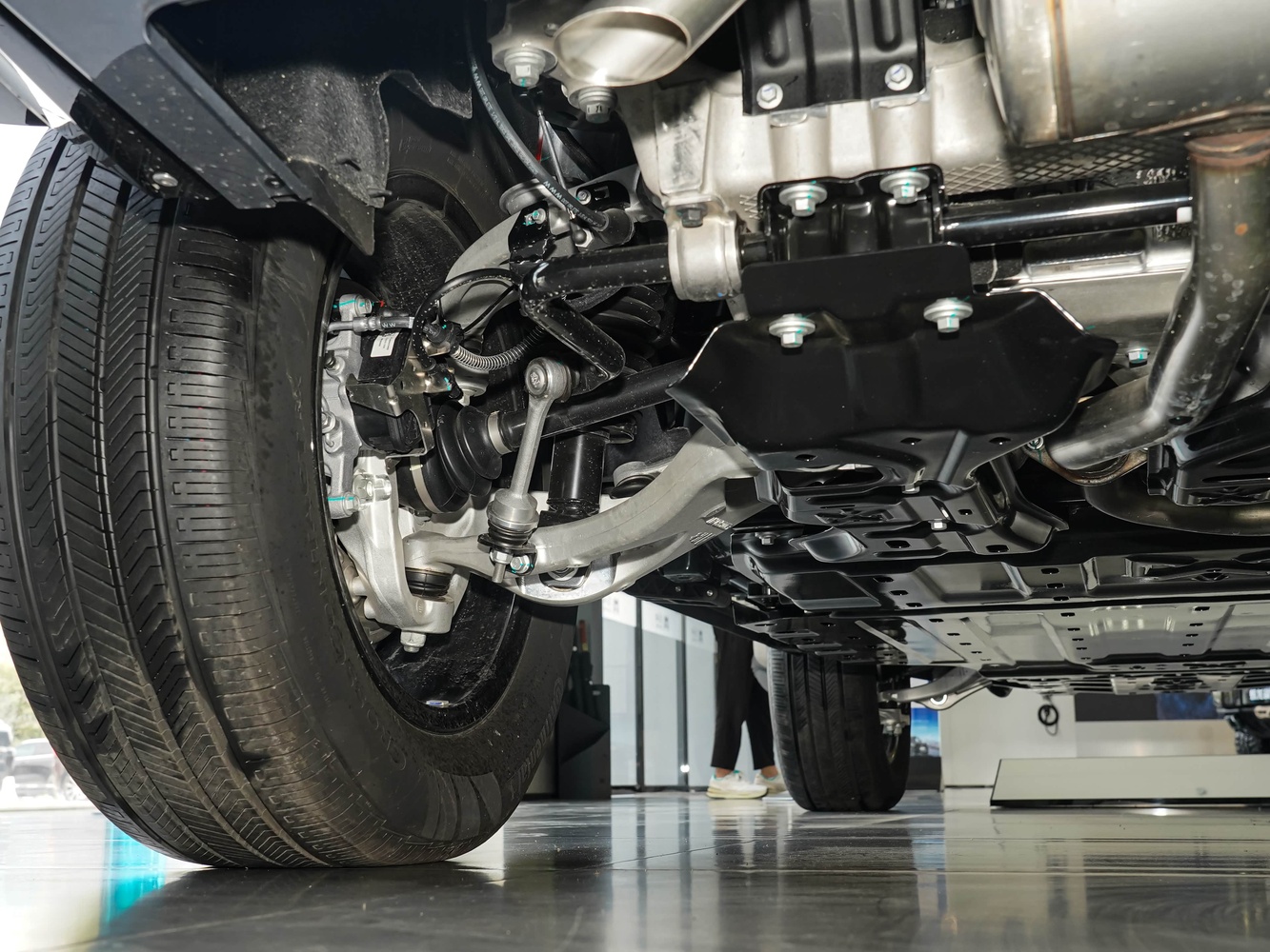 - Suspensie pneumatică reglabilă (150 mm cursă) cu amortizoare adaptive CDC (răspuns 0,02 s) pe modelul de top. Cea de bază este independentă cu arcuri elicoidale simple.