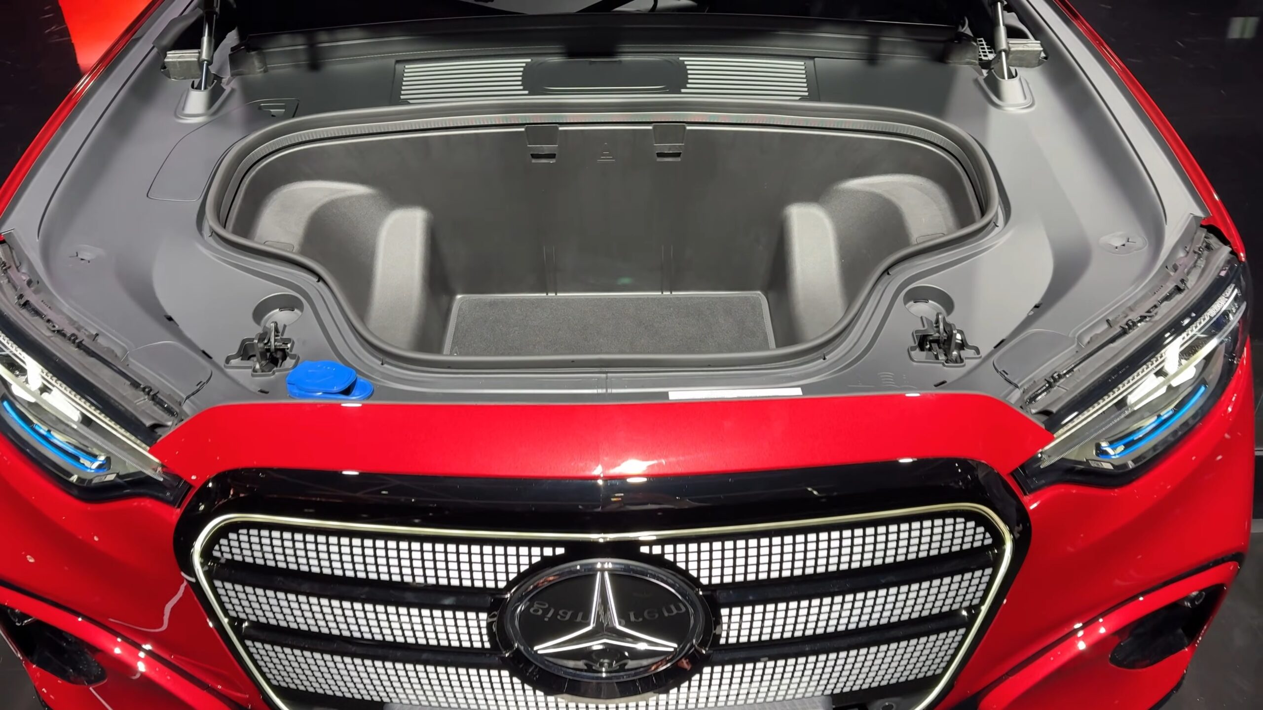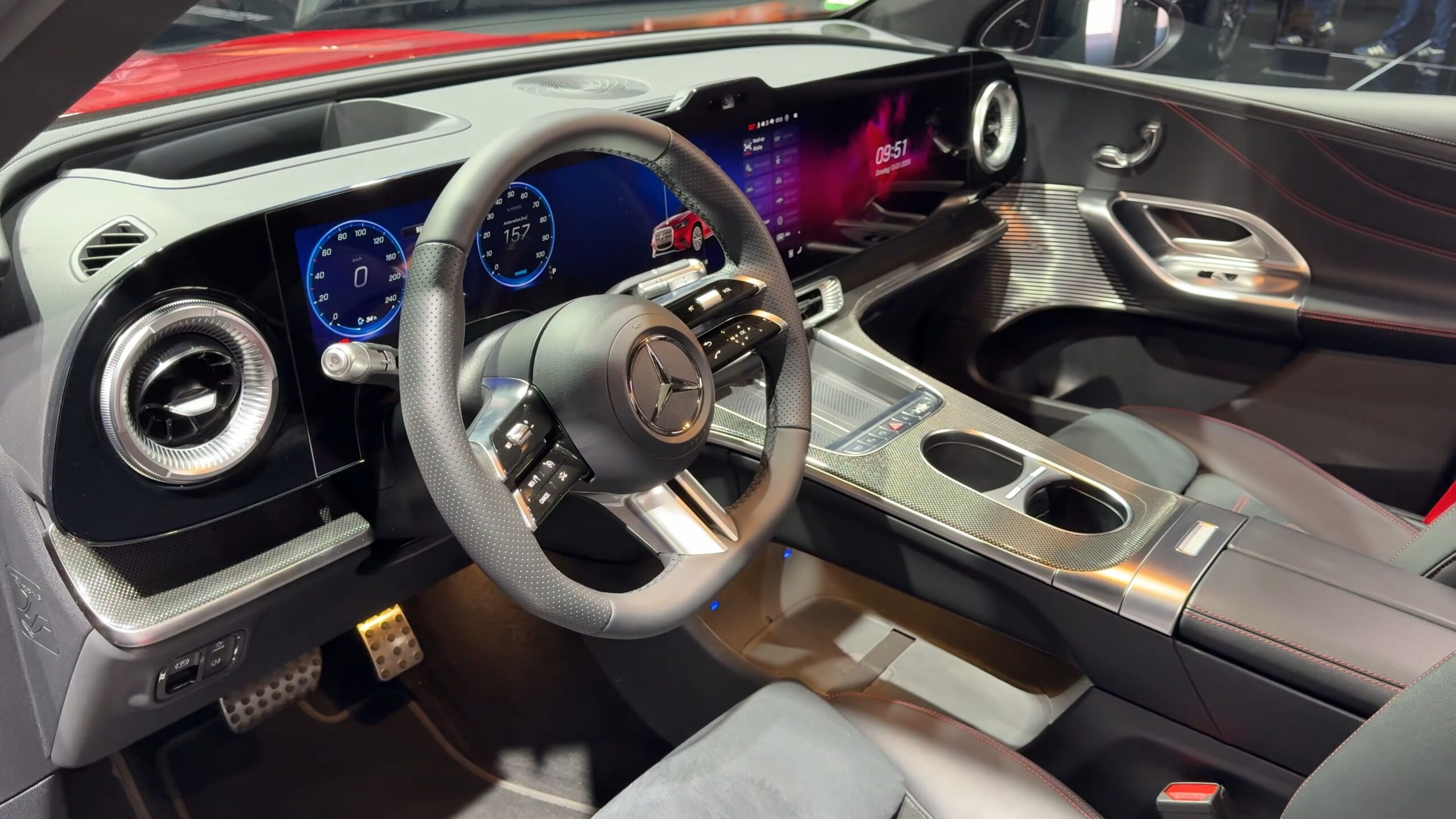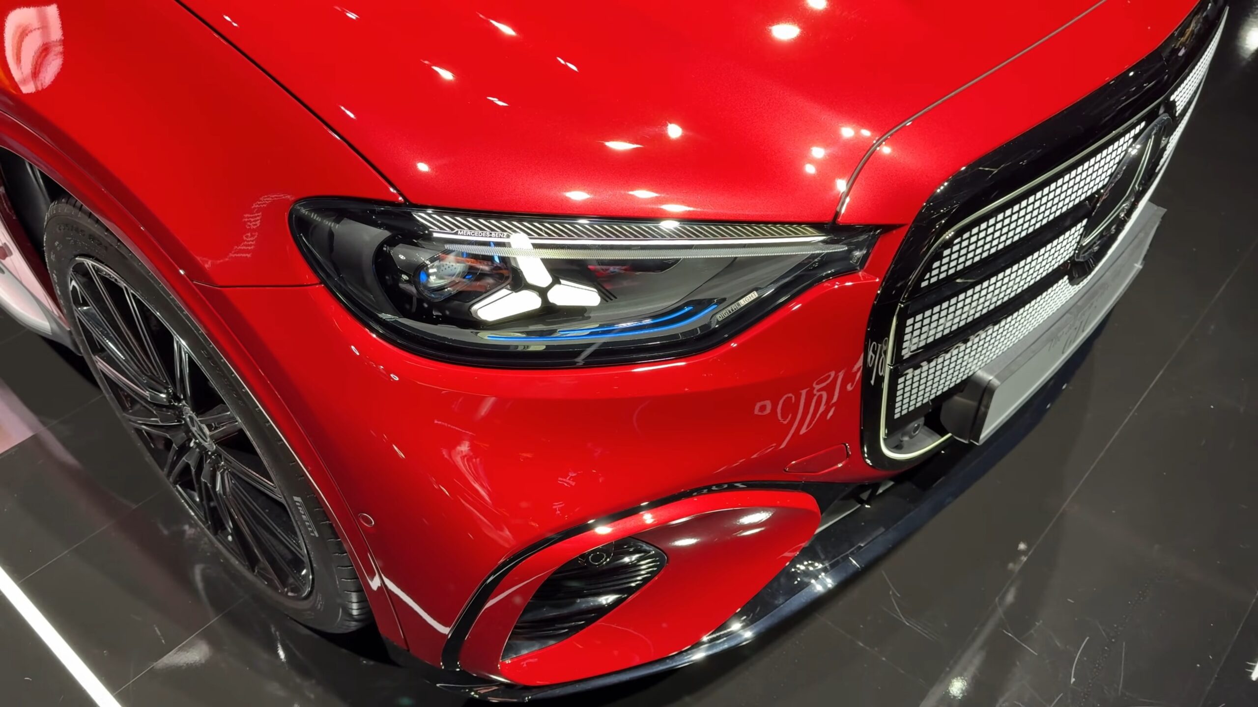 Exteriorul continuă tradiția mărcii: grilă frontală iluminată (atât conturul, cât și interiorul), logo Mercedes iluminat, faruri digitale inteligente și un spate elegant și bine proporționat. Mașina arată premium și modern, cu dimensiuni generoase care oferă spațiu suficient în interior.